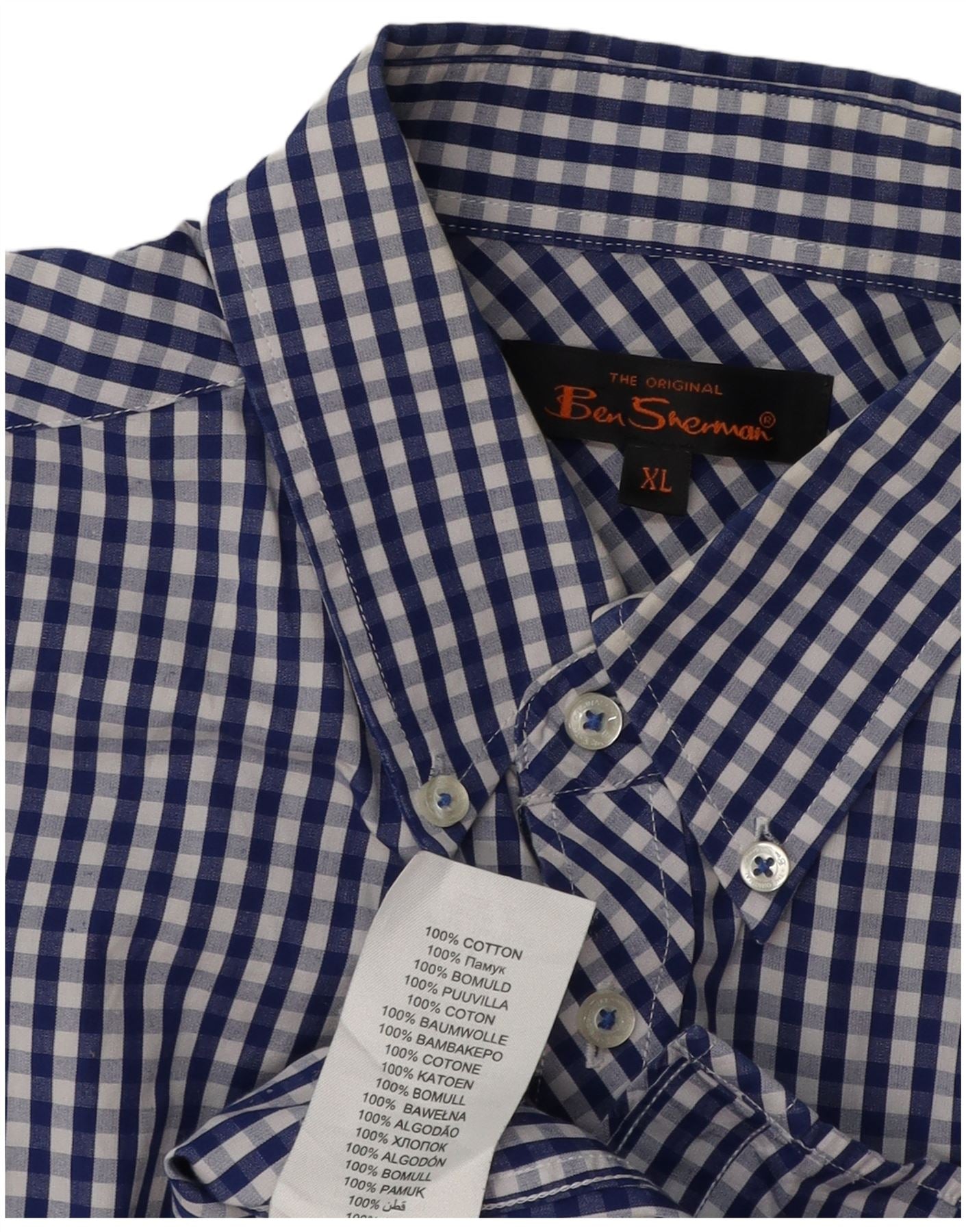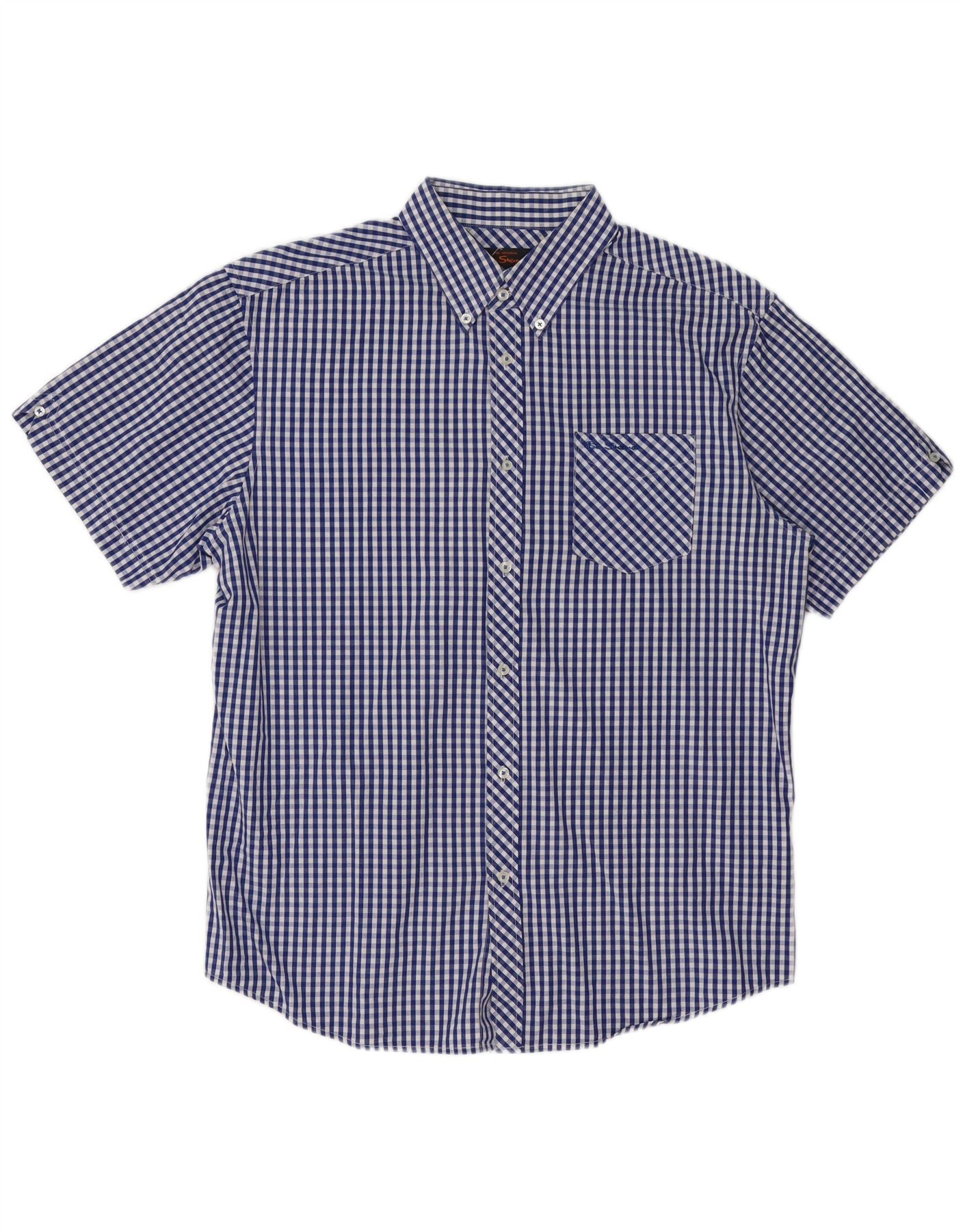 Home > Vintage Ben Sherman Kleidung > Herren > BEN SHERMAN Herren Kurzarmhemd XL Blau Gingham Baumwolle