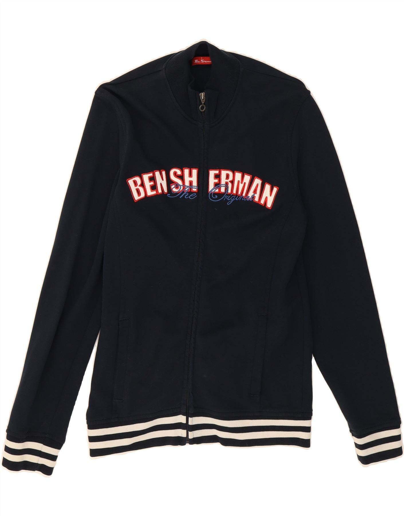 BEN SHERMAN Womens Graphic Tracksuit Top Jacket UK 18 XL Navy Blue Cotton