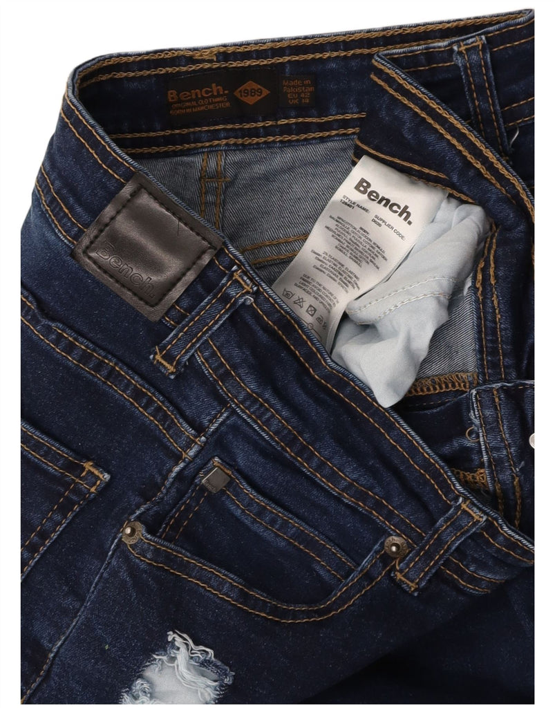 BENCH Womens High Waist Slim Jeans UK 14 Large W32 L28 Navy Blue