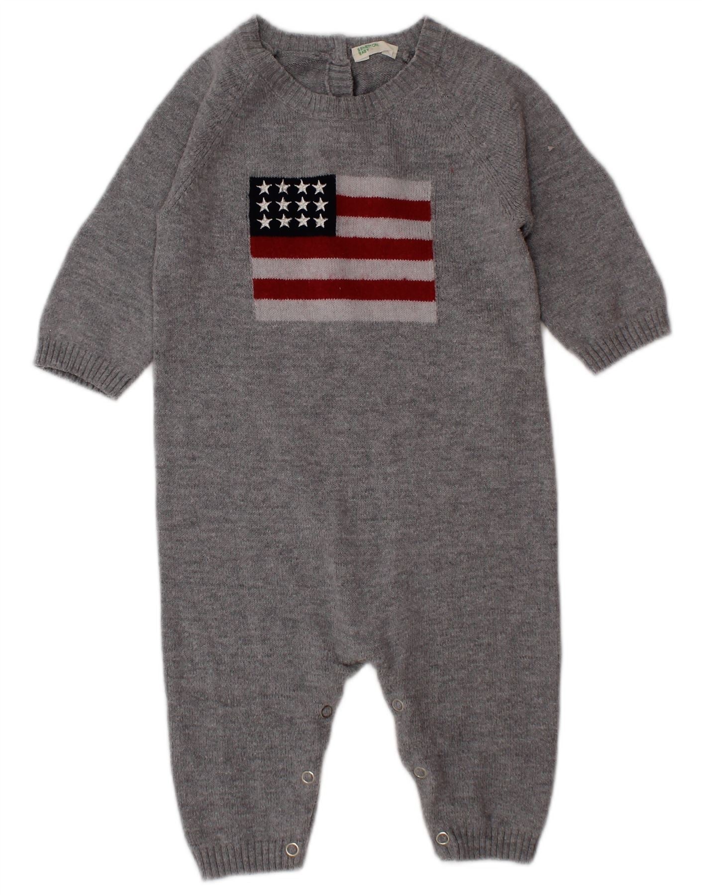 BENETTON Baby-Jungen-Overall mit Grafik, 3–6 Monate, Grau