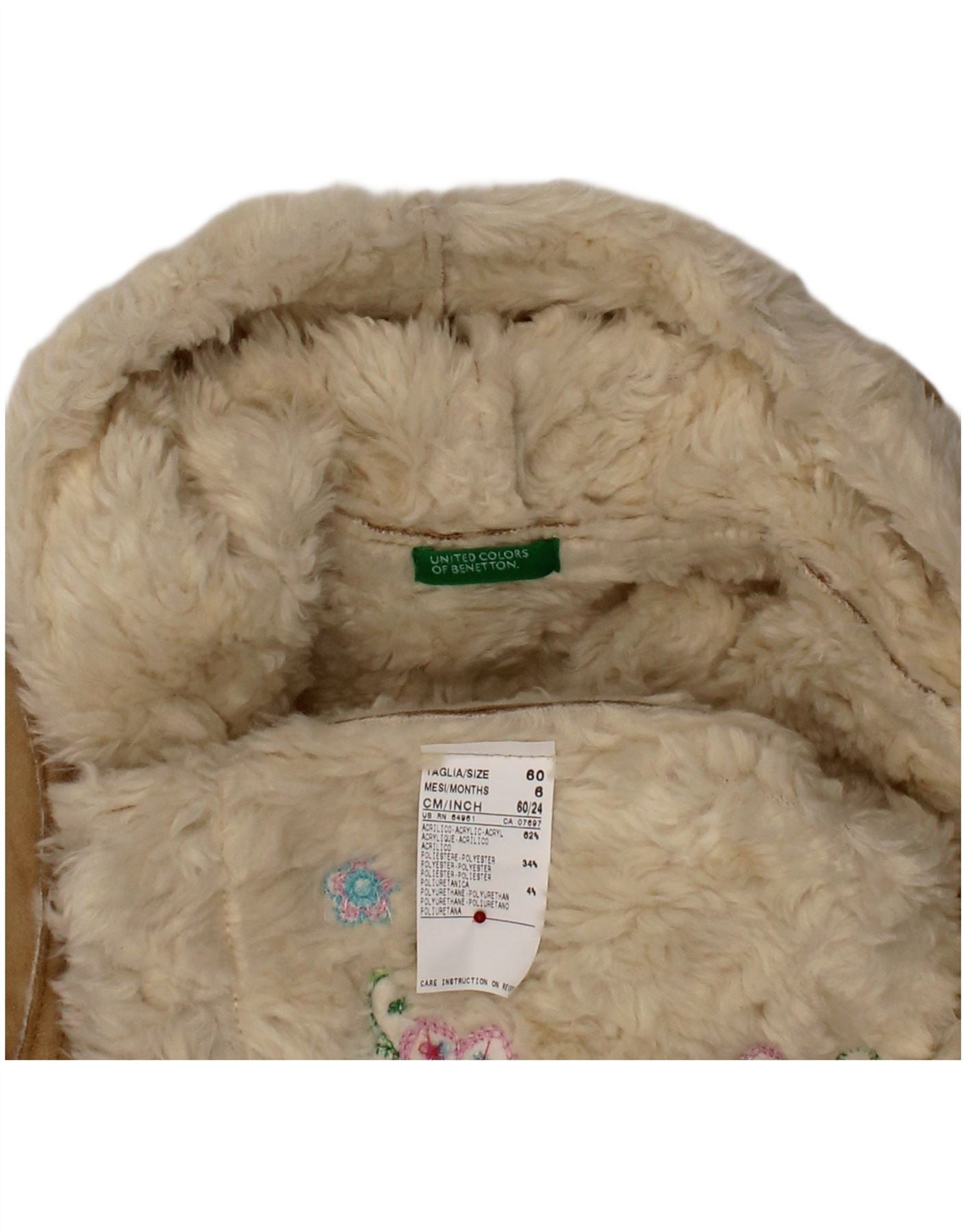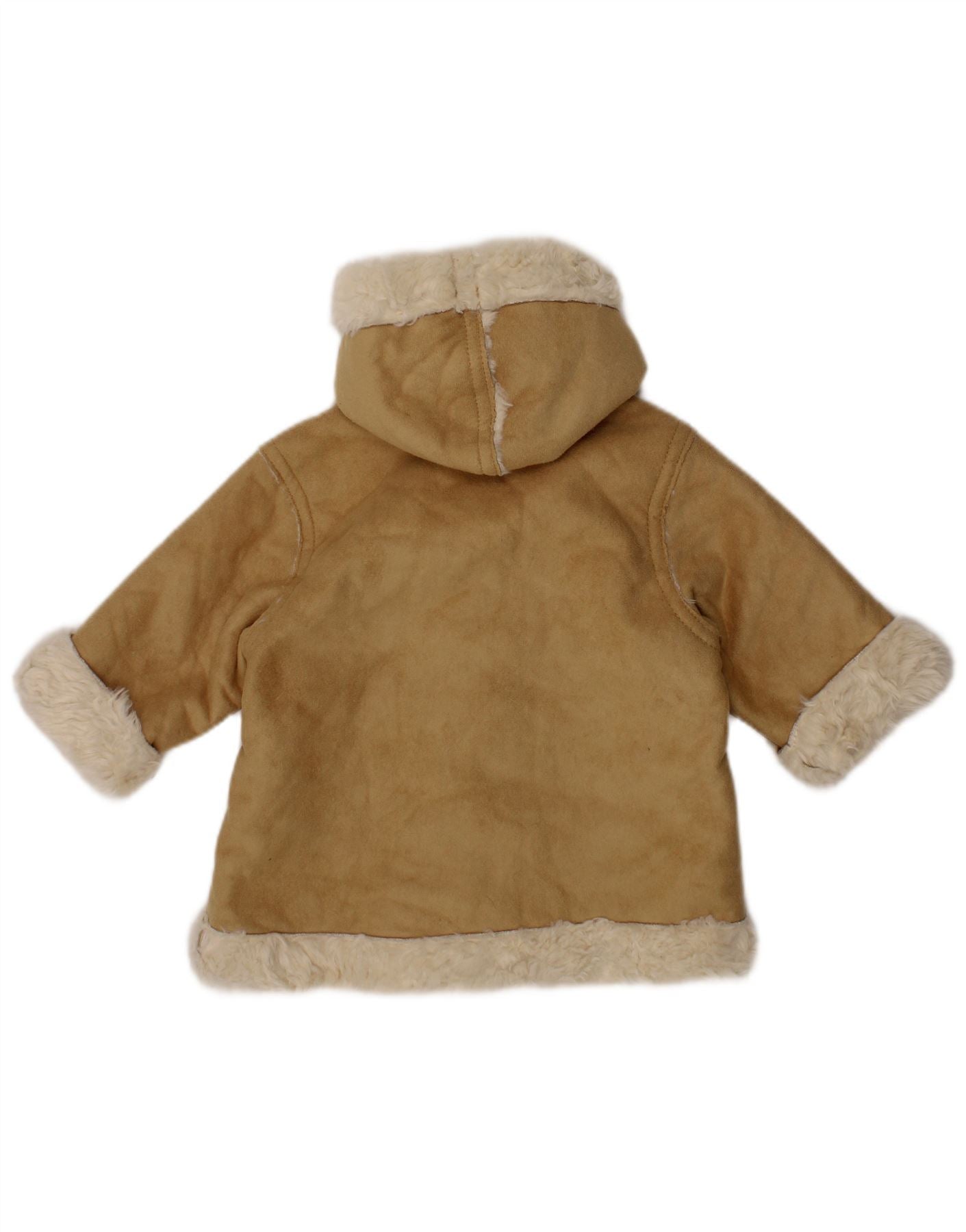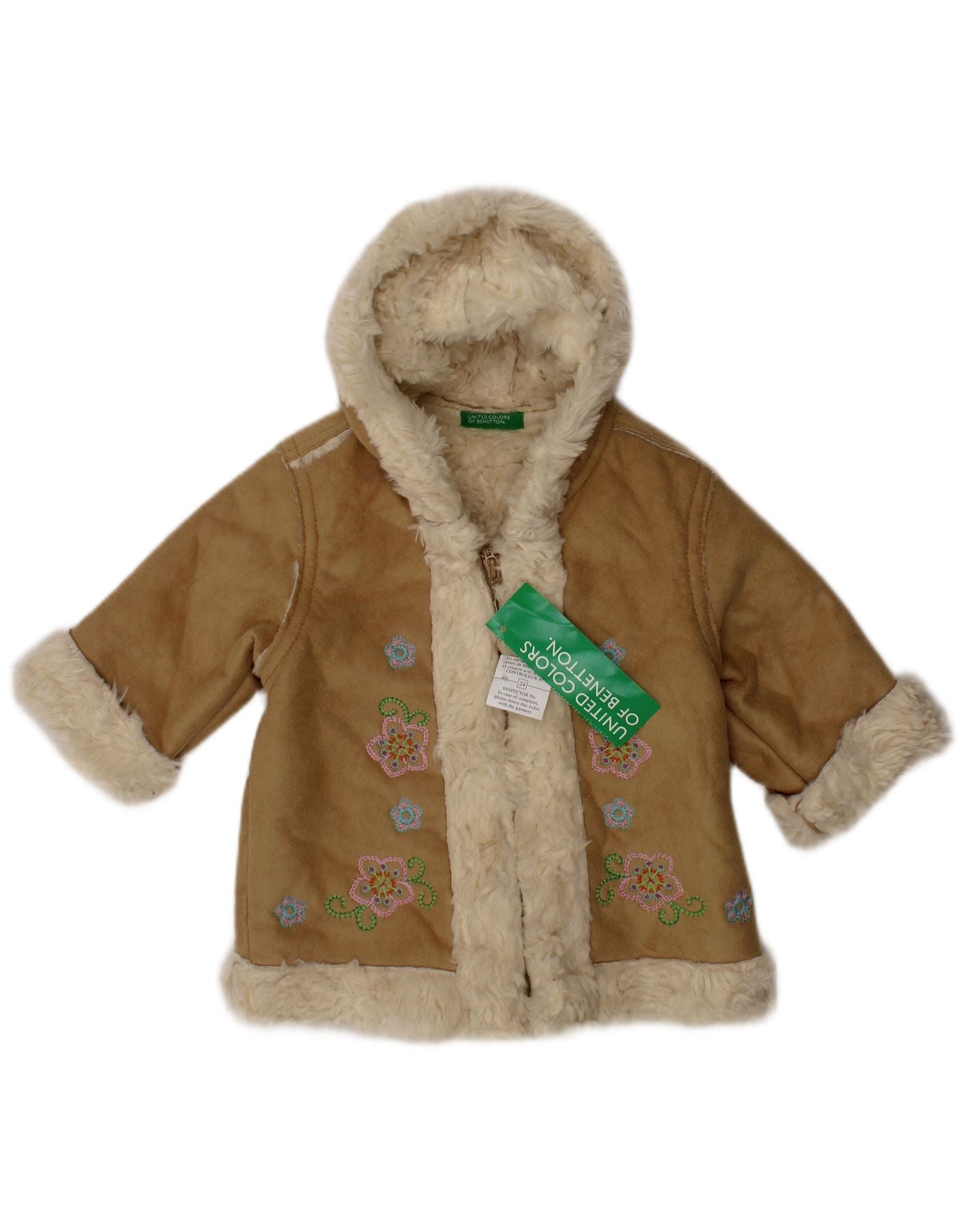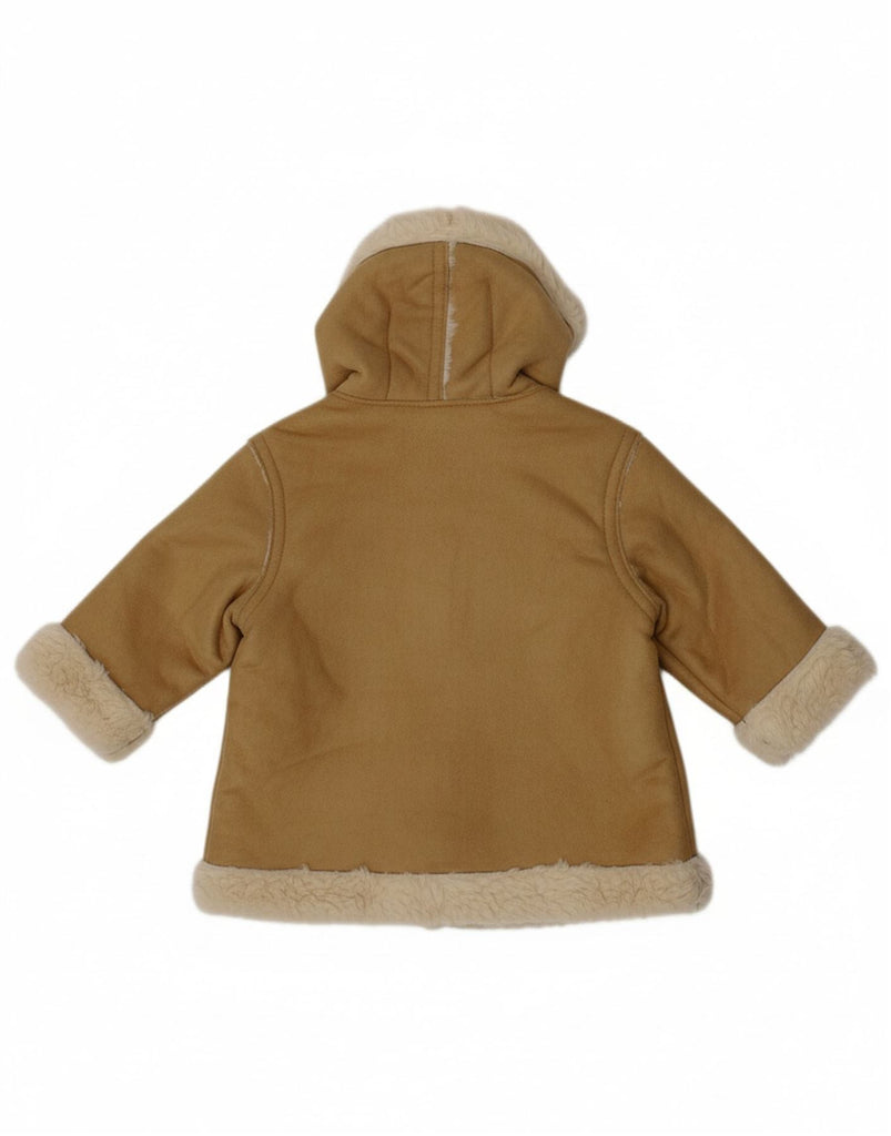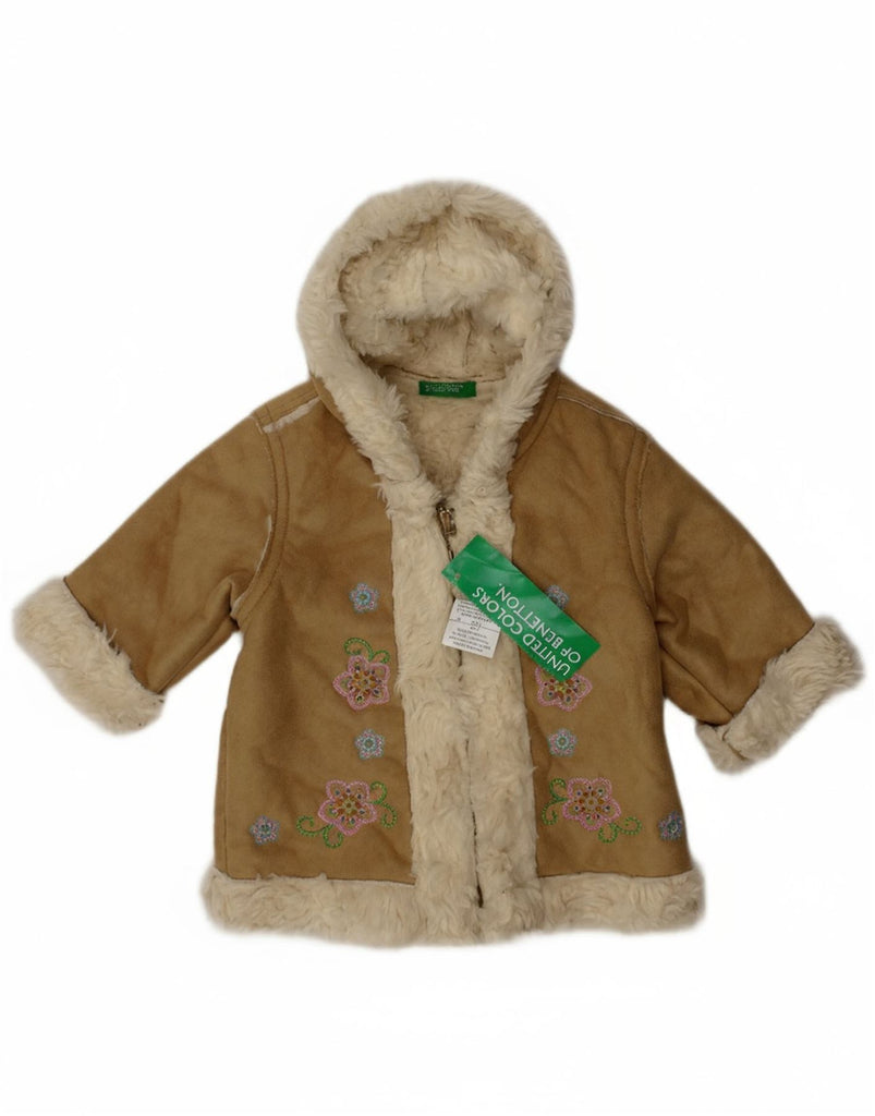 BENETTON Baby Girls Hooded Sherpa Jacket 3-6 Months Beige Floral Acrylic