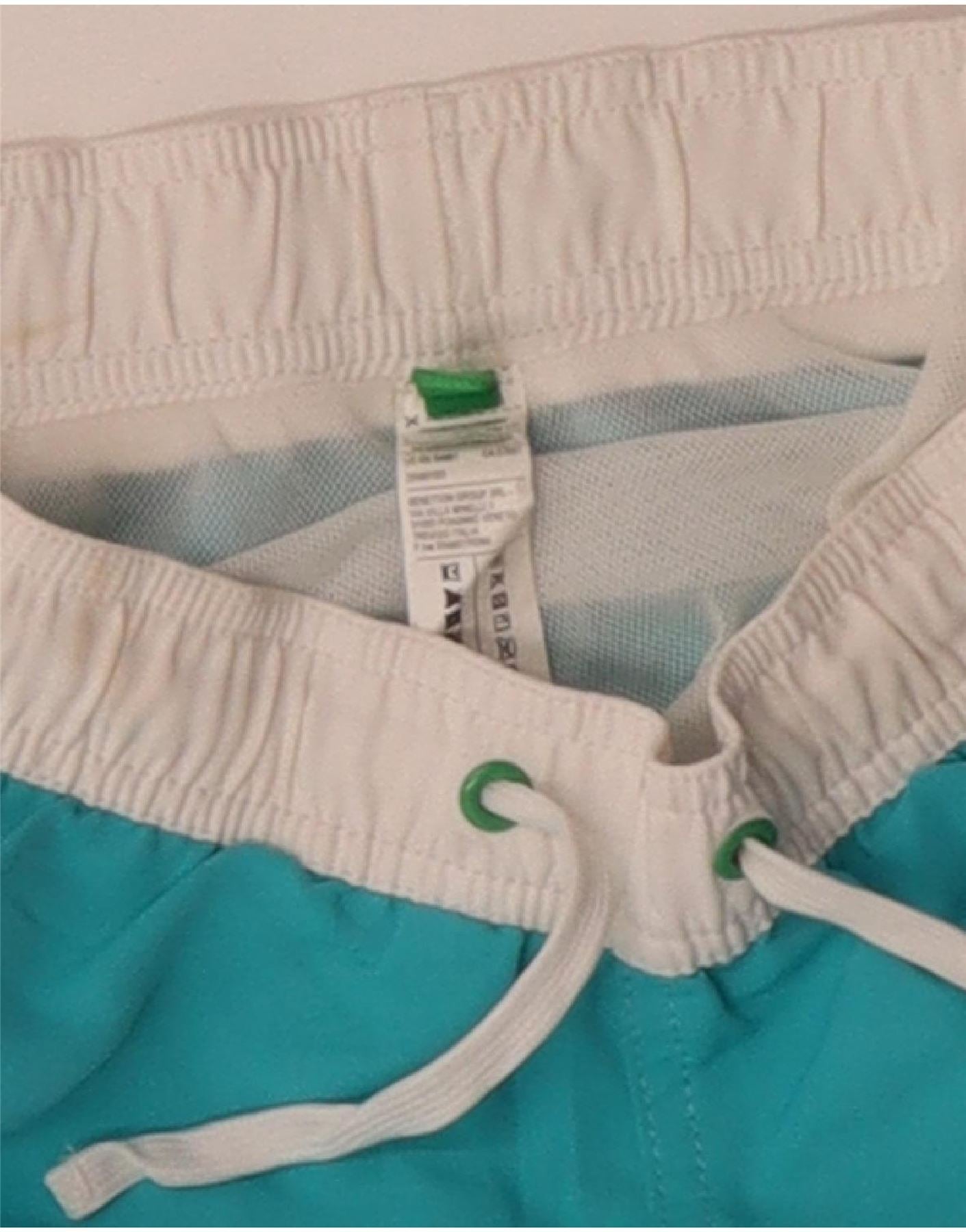 BENETTON Jungen-Badeshorts mit Grafik, 8–9 Jahre, blaues Farbblockdesign