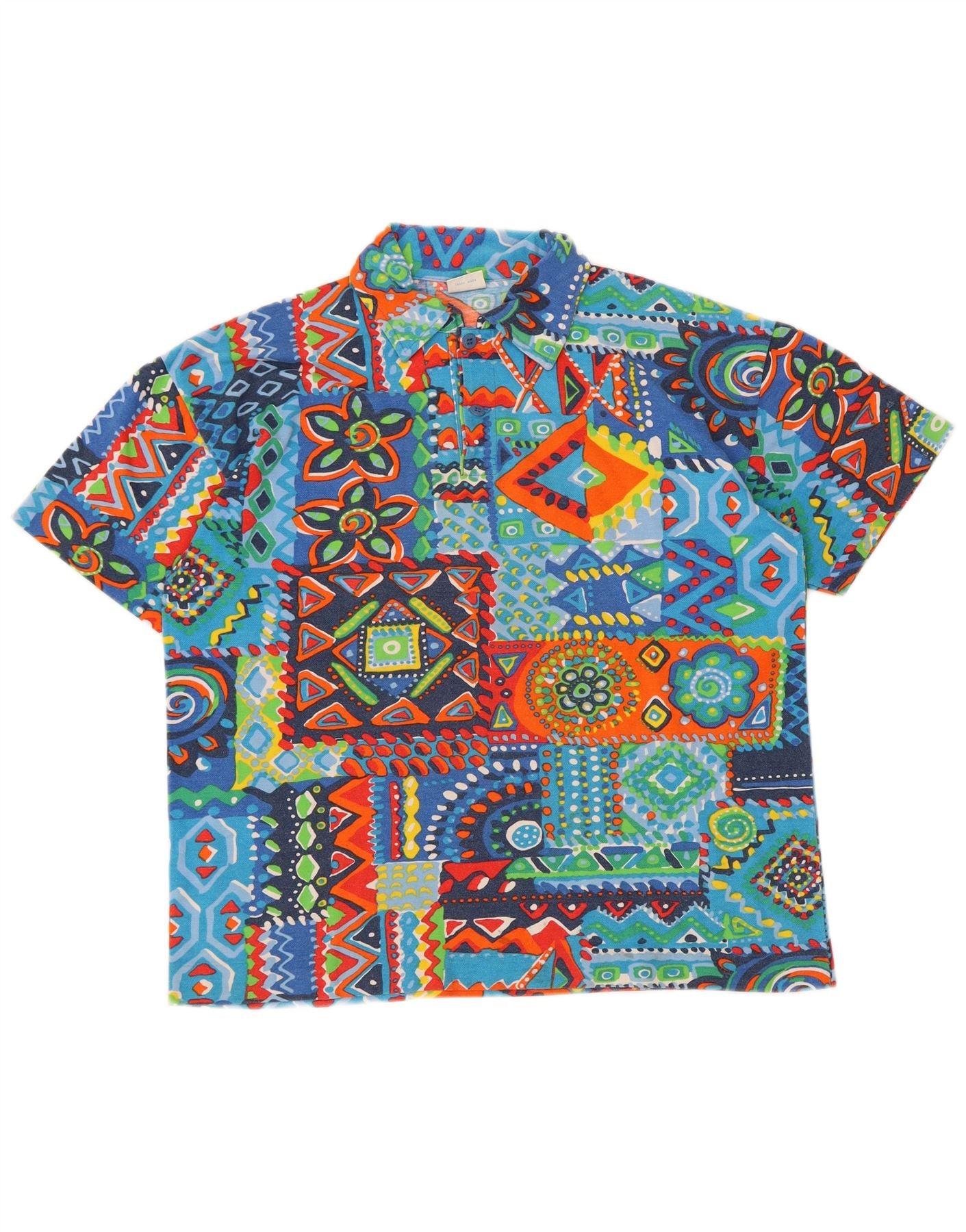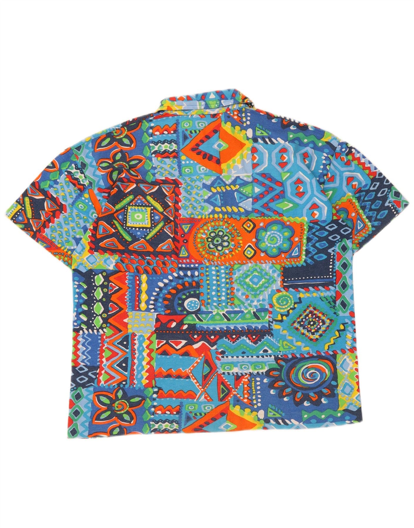 BENETTON Boys Polo Shirt 15-16 Years XL Multicoloured Patchwork Cotton