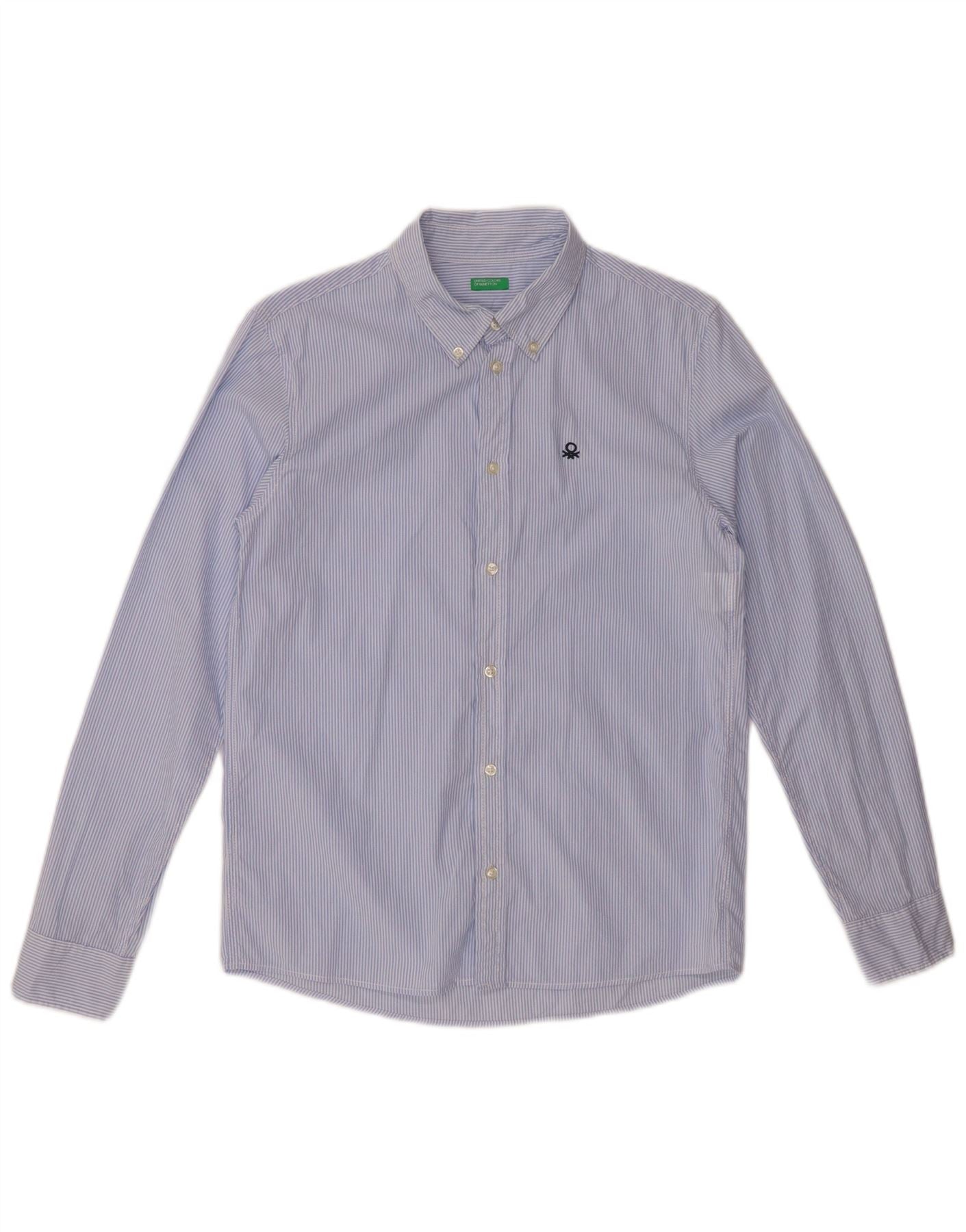 BENETTON Jungen-Hemd, 13–14 Jahre, 3XL, blaue Nadelstreifen-Baumwolle