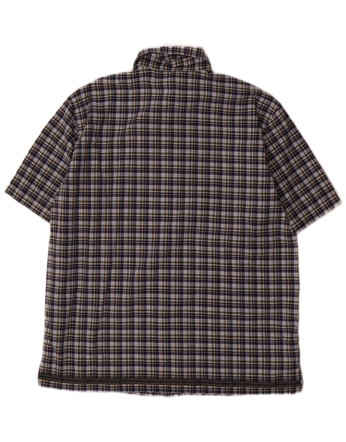 BENETTON Kurzarmhemd für Jungen, 11–12 Jahre, XL, marineblau, kariert, Baumwolle
