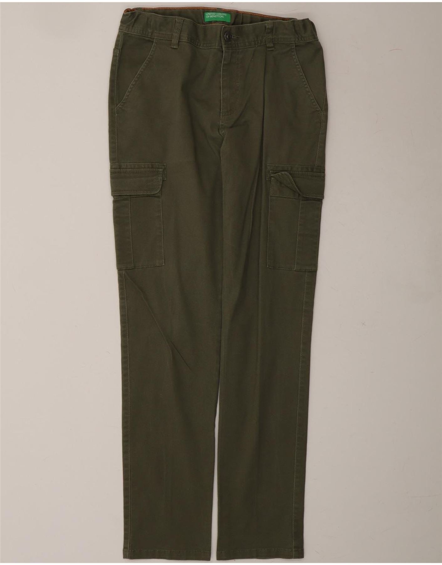 BENETTON Boys Straight Cargo Trousers 13-14 Years 3XL W28 L30 Khaki Cotton