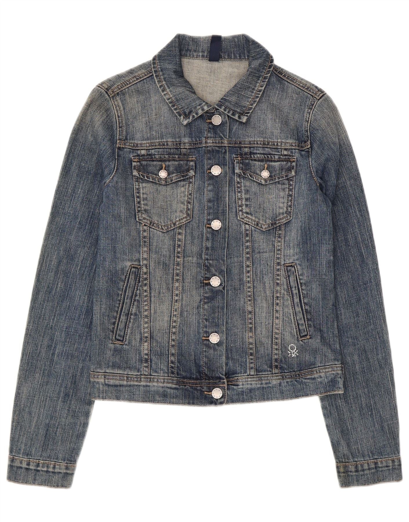Benetton Jeansjacke für Mädchen, 11–12 Jahre, 2XL, blaue Baumwolle