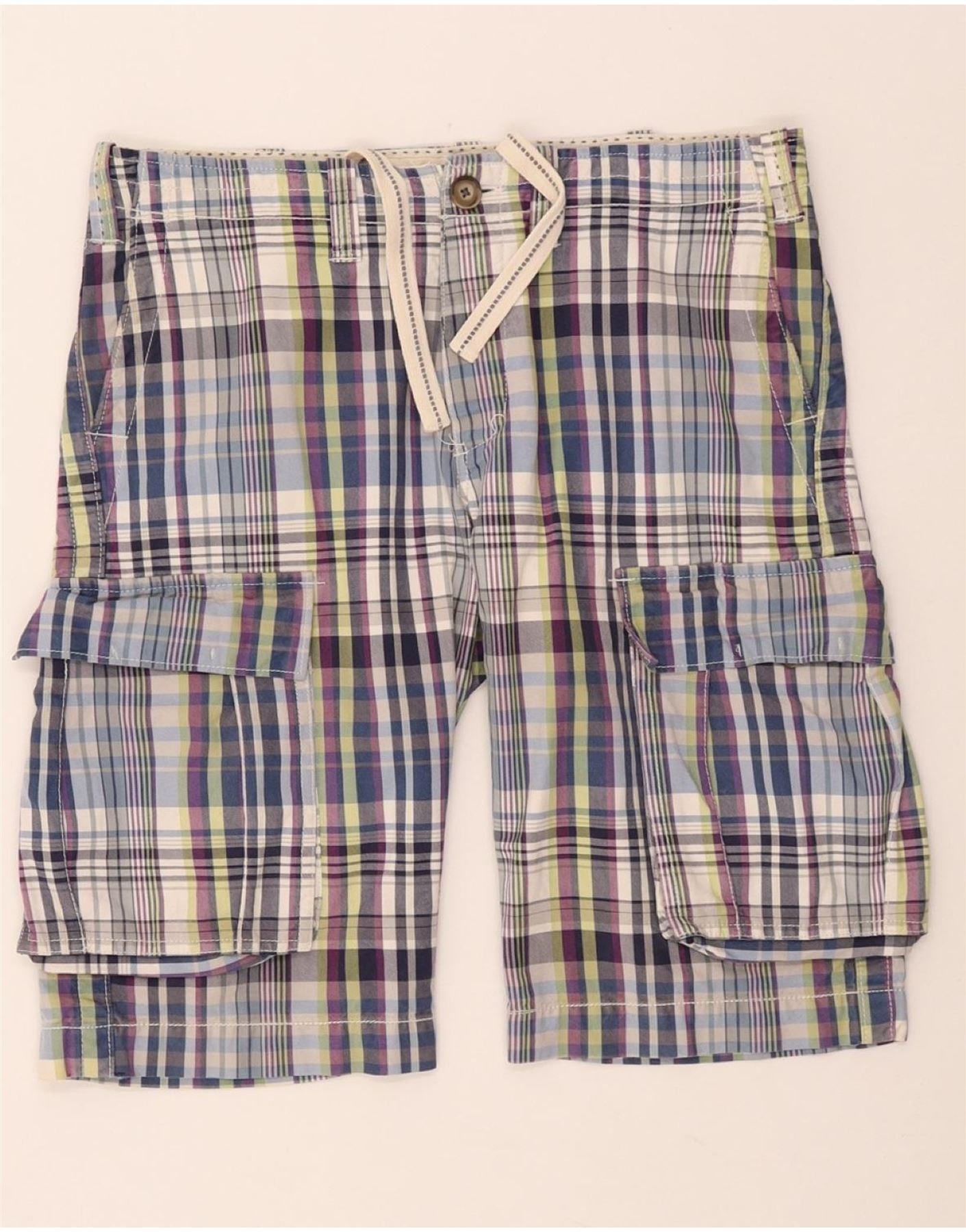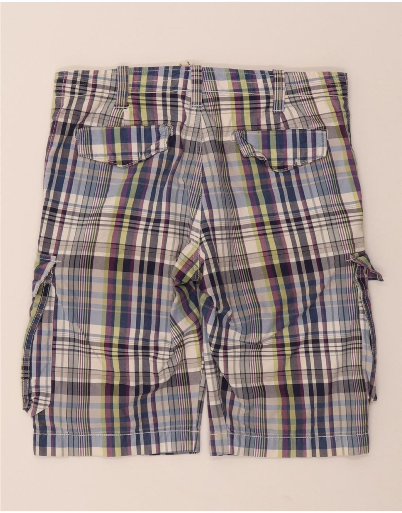 BENETTON Mens Cargo Shorts IT 46 Small W32 Multicoloured Check Cotton
