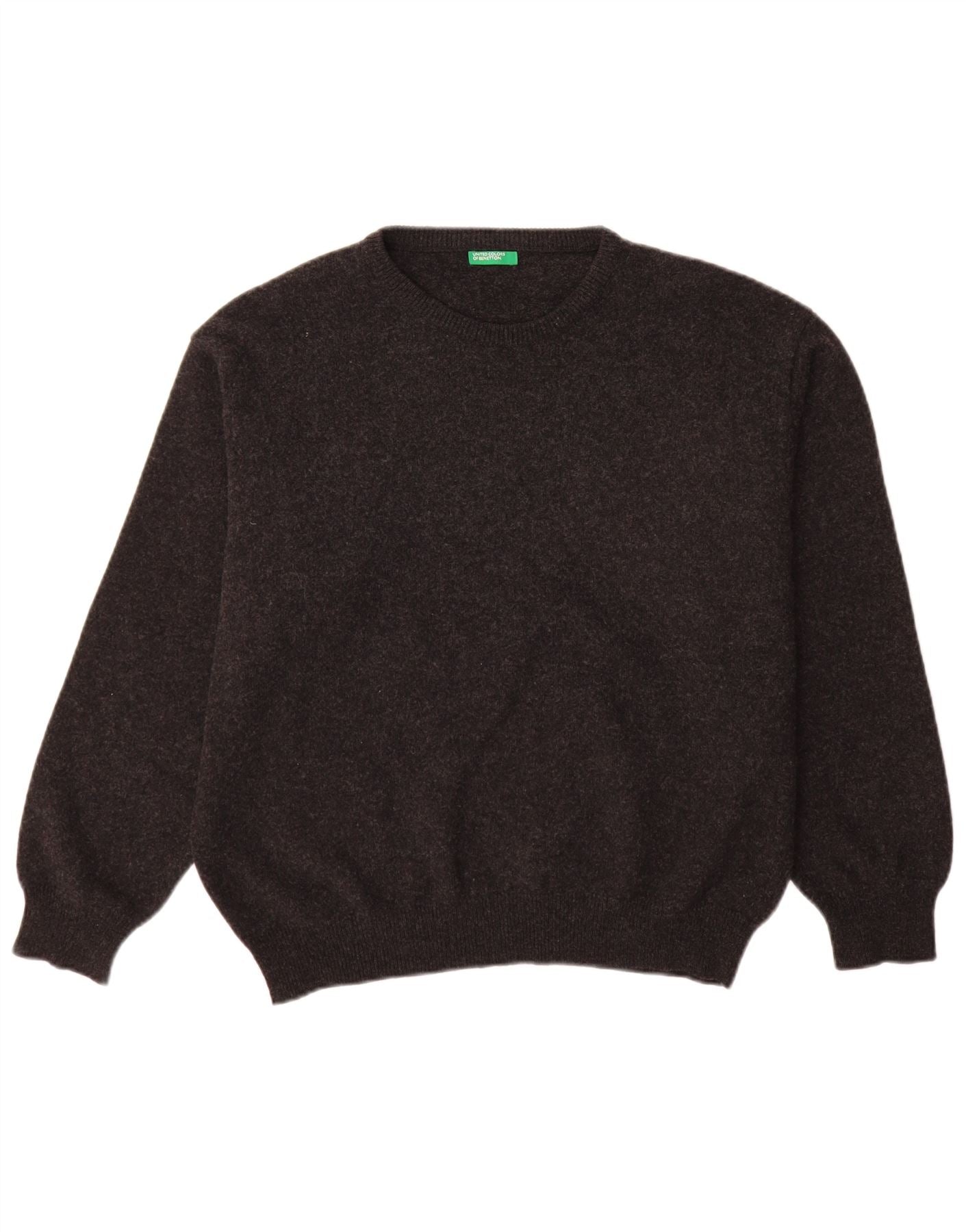 BENETTON Mens Crew Neck Jumper Sweater Large Grey New Wool