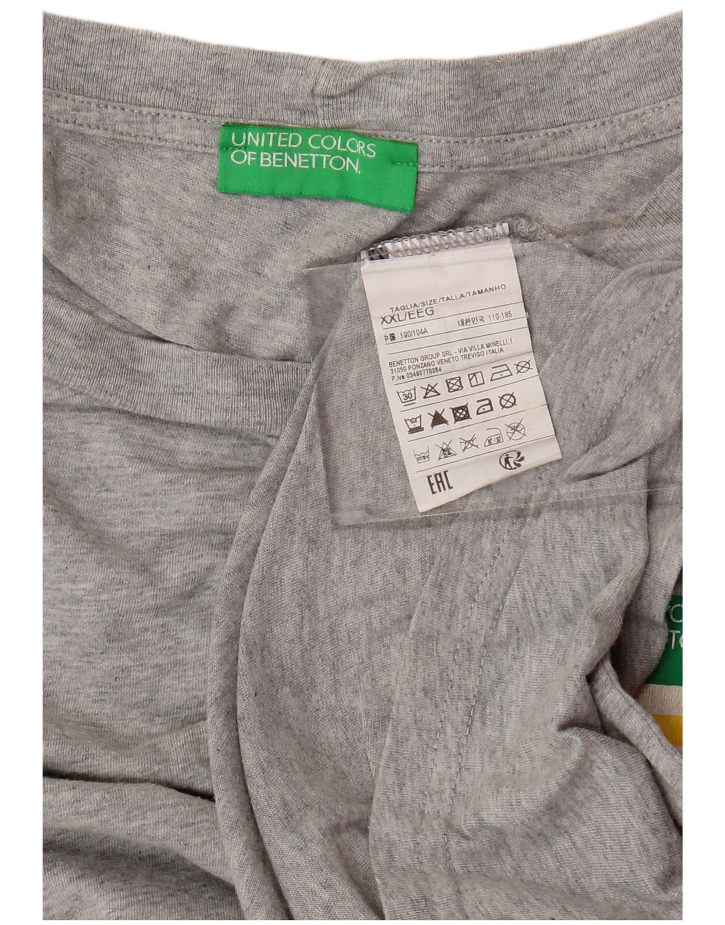 BENETTON Herren Grafik-T-Shirt-Oberteil 2XL Graue Colourblock-Baumwolle