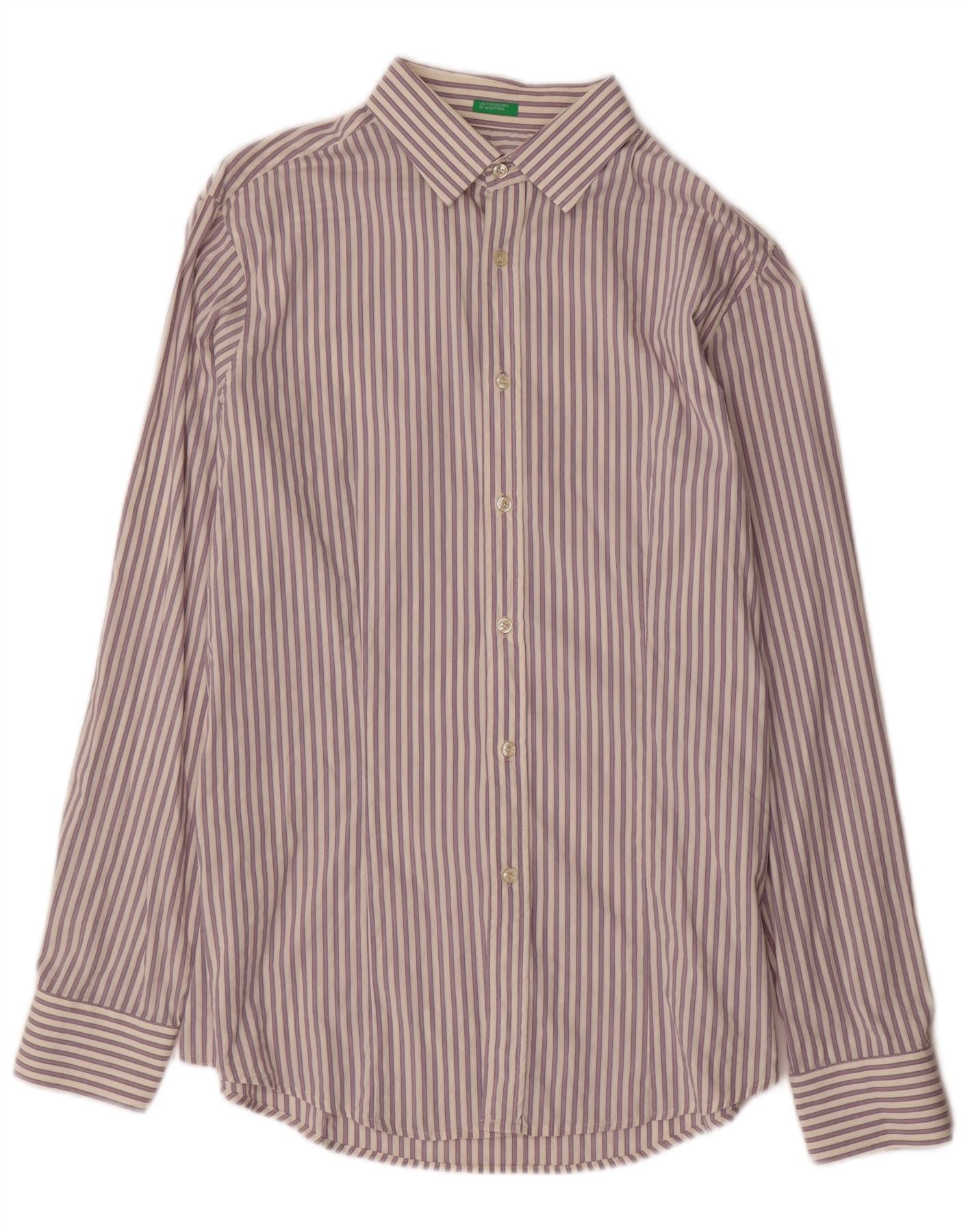 BENETTON Herrenhemd 2XL Lila gestreift aus Baumwolle