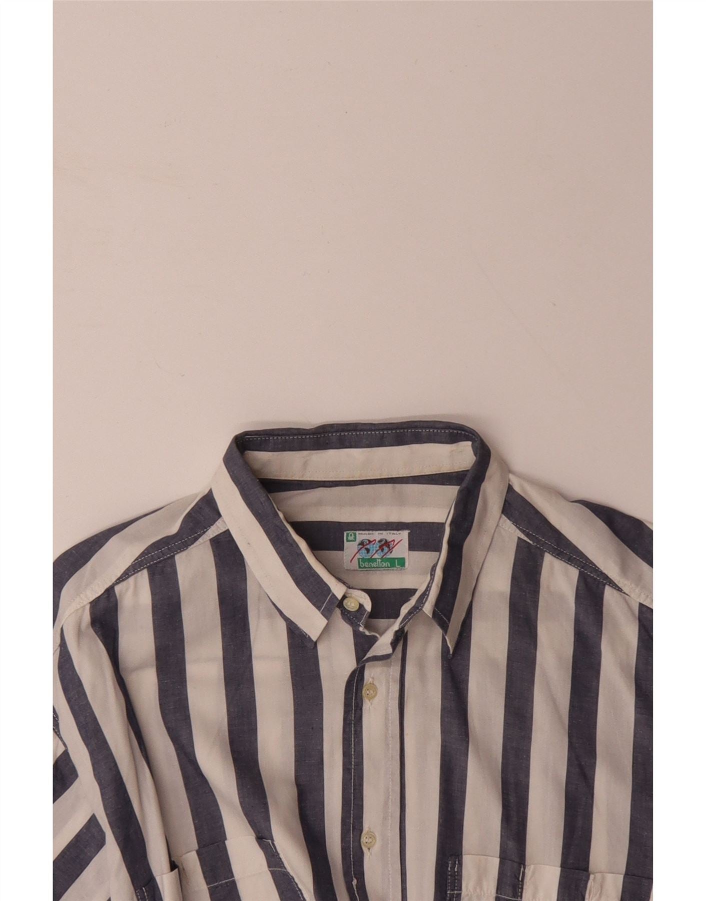 BENETTON Herren-Kurzarmhemd, groß, marineblau gestreift
