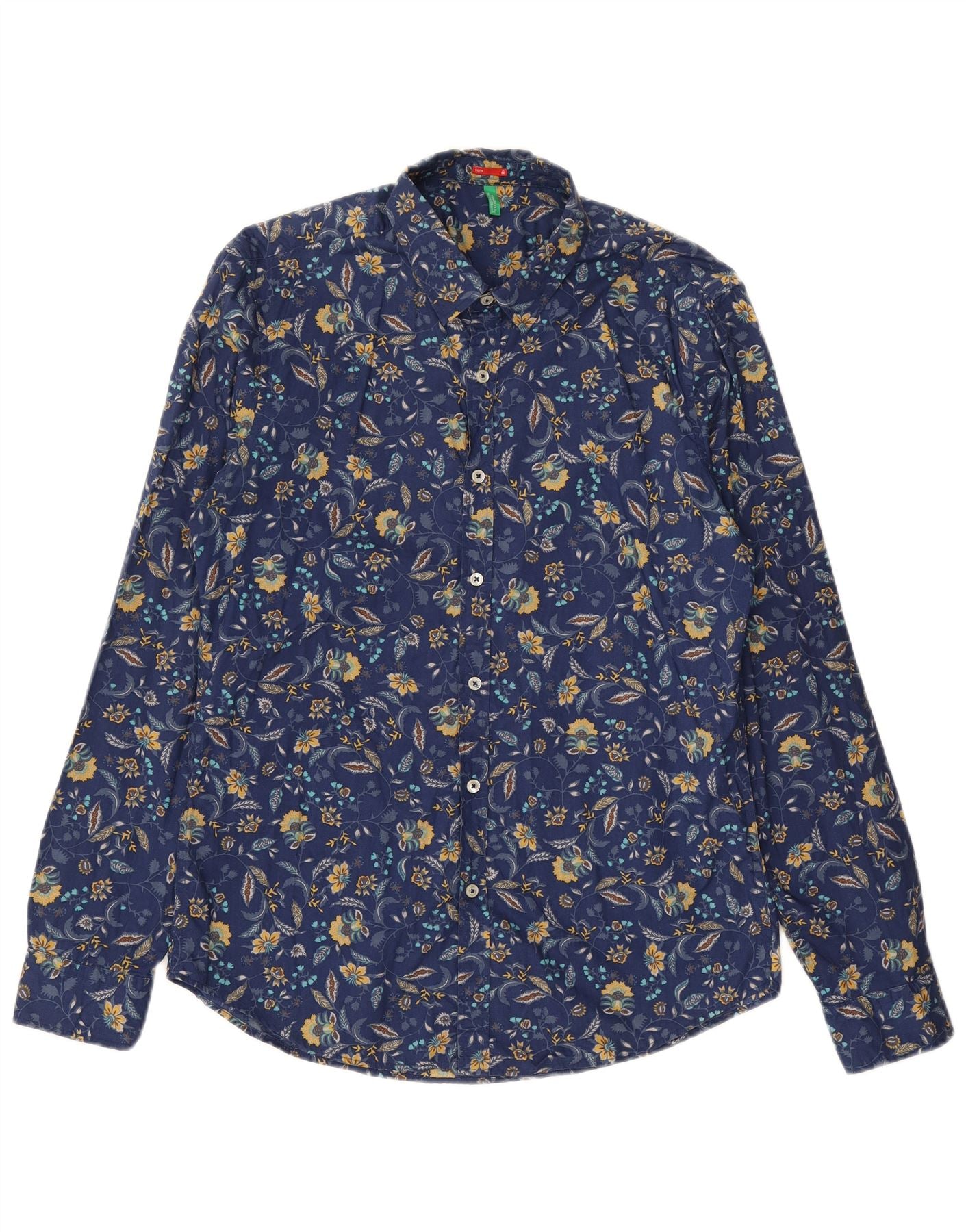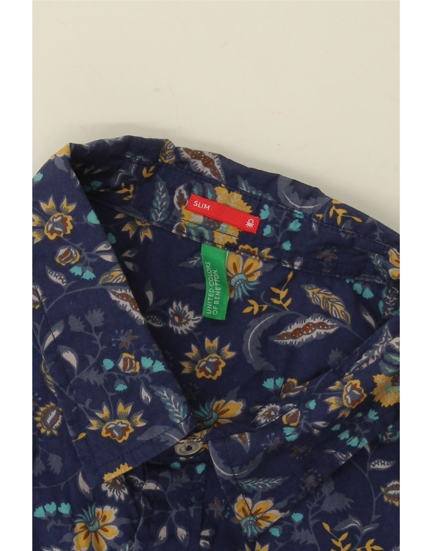 Home > Vintage Benetton-Kleidung > Herren > BENETTON Slim-Hemd für Herren, mittleres Marineblau mit Blumenmuster