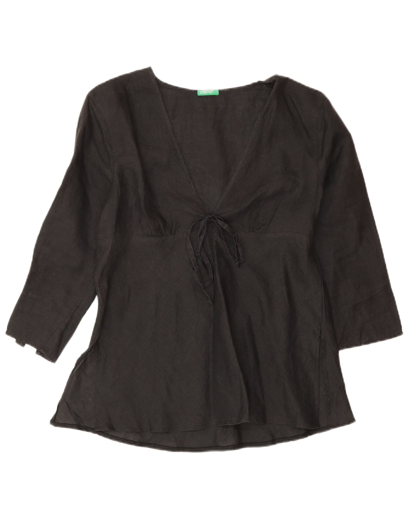 Home > Vintage Benetton-Kleidung > Damen > Benetton Damen-Blusenoberteil mit 3/4-Ärmeln, Gr. 10, Größe S, Schwarz, Leinen
