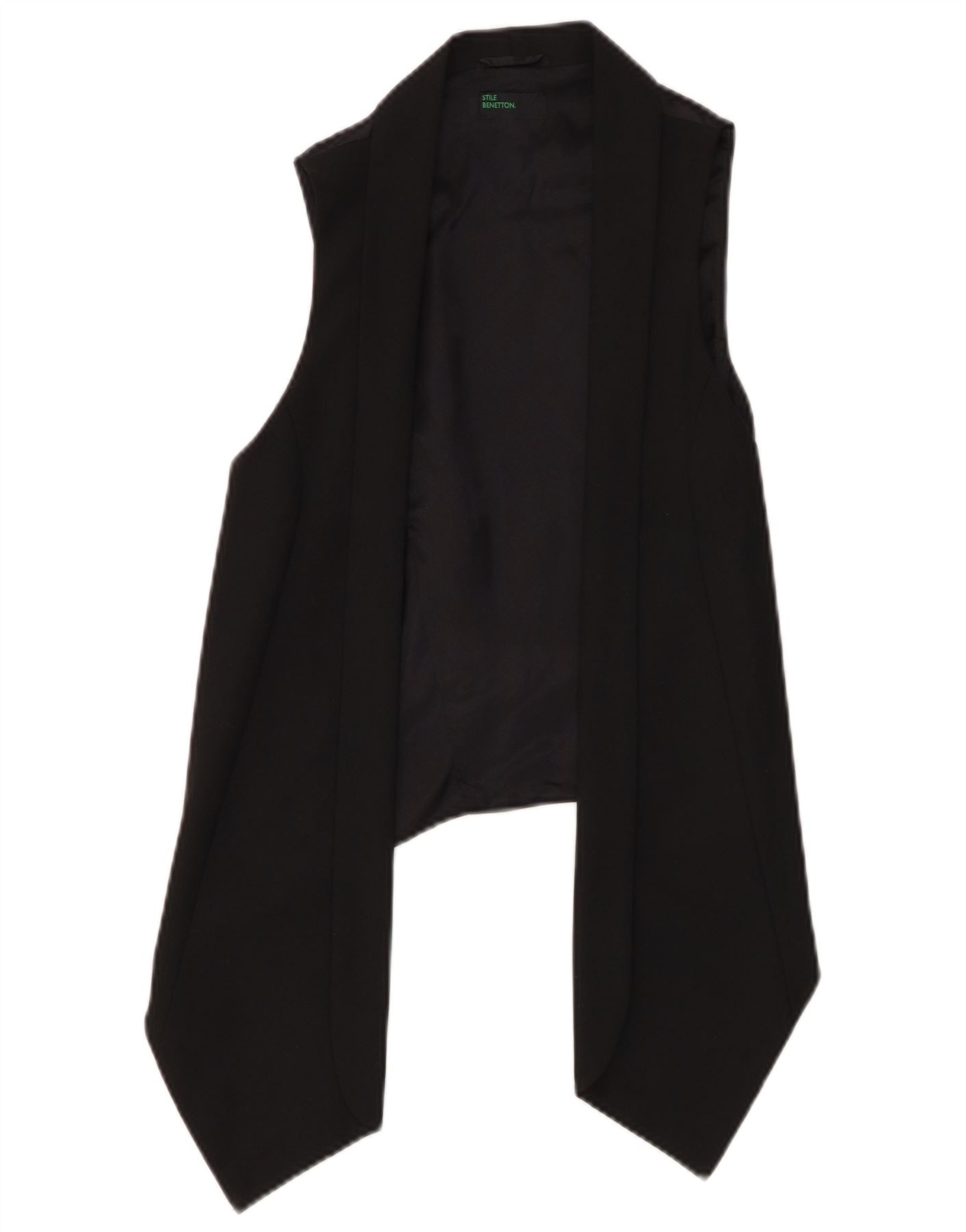 BENETTON Damen Asymmetrische OPEN Weste UK 12 Medium Schwarz
