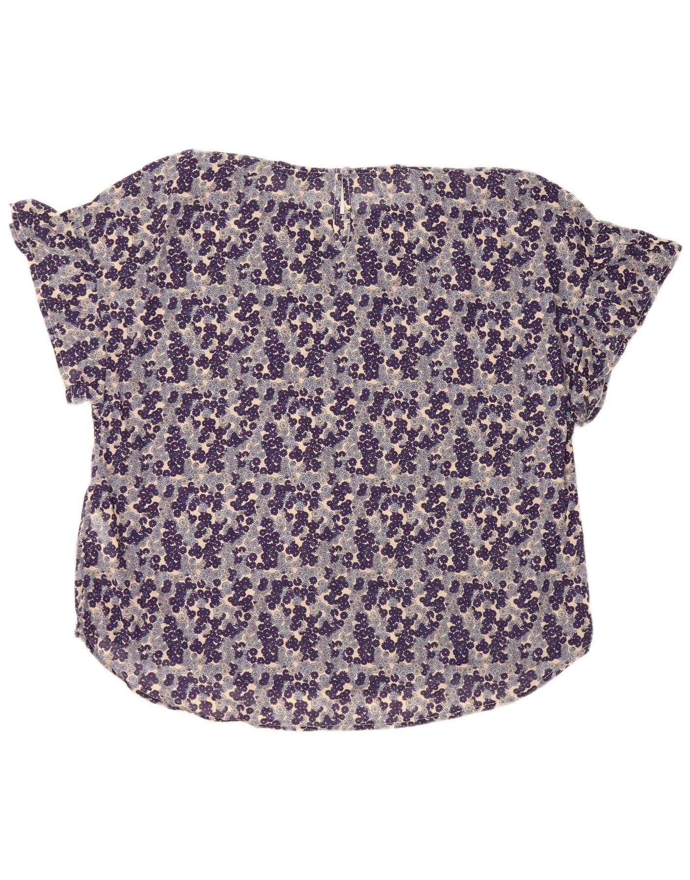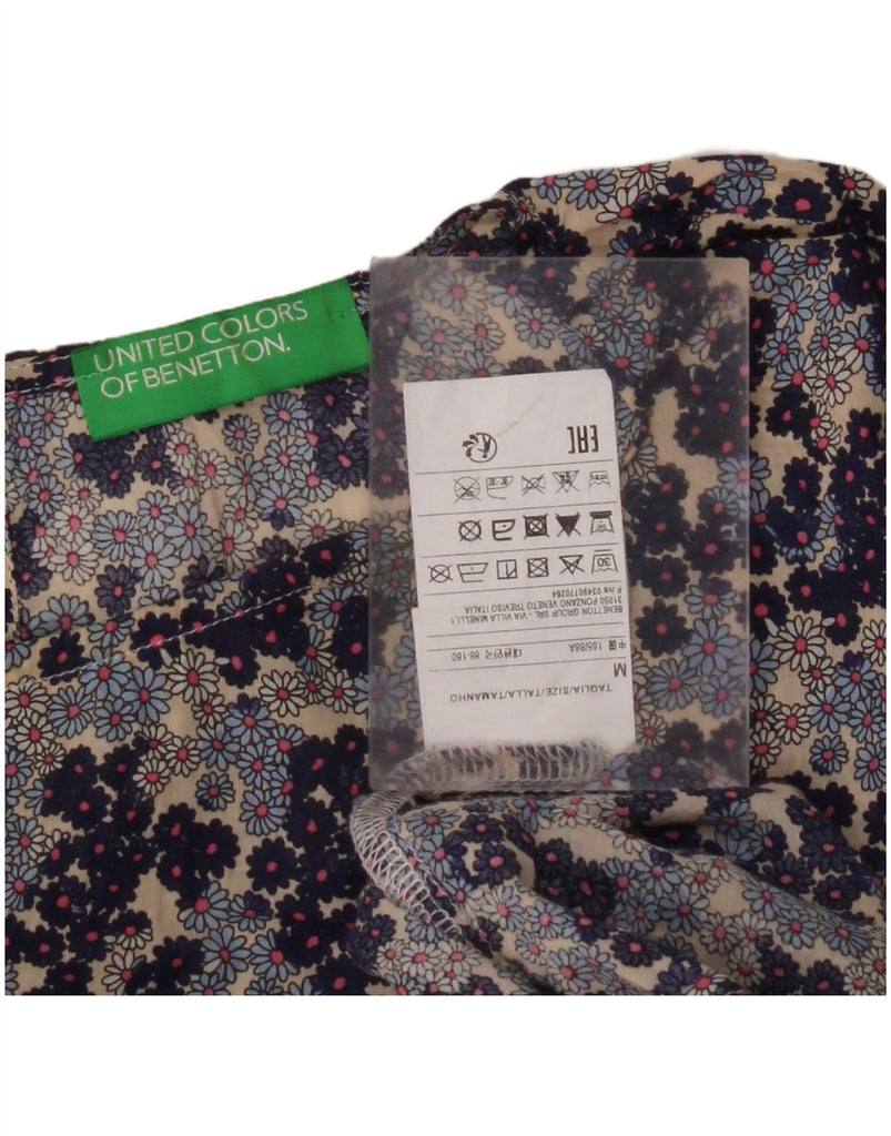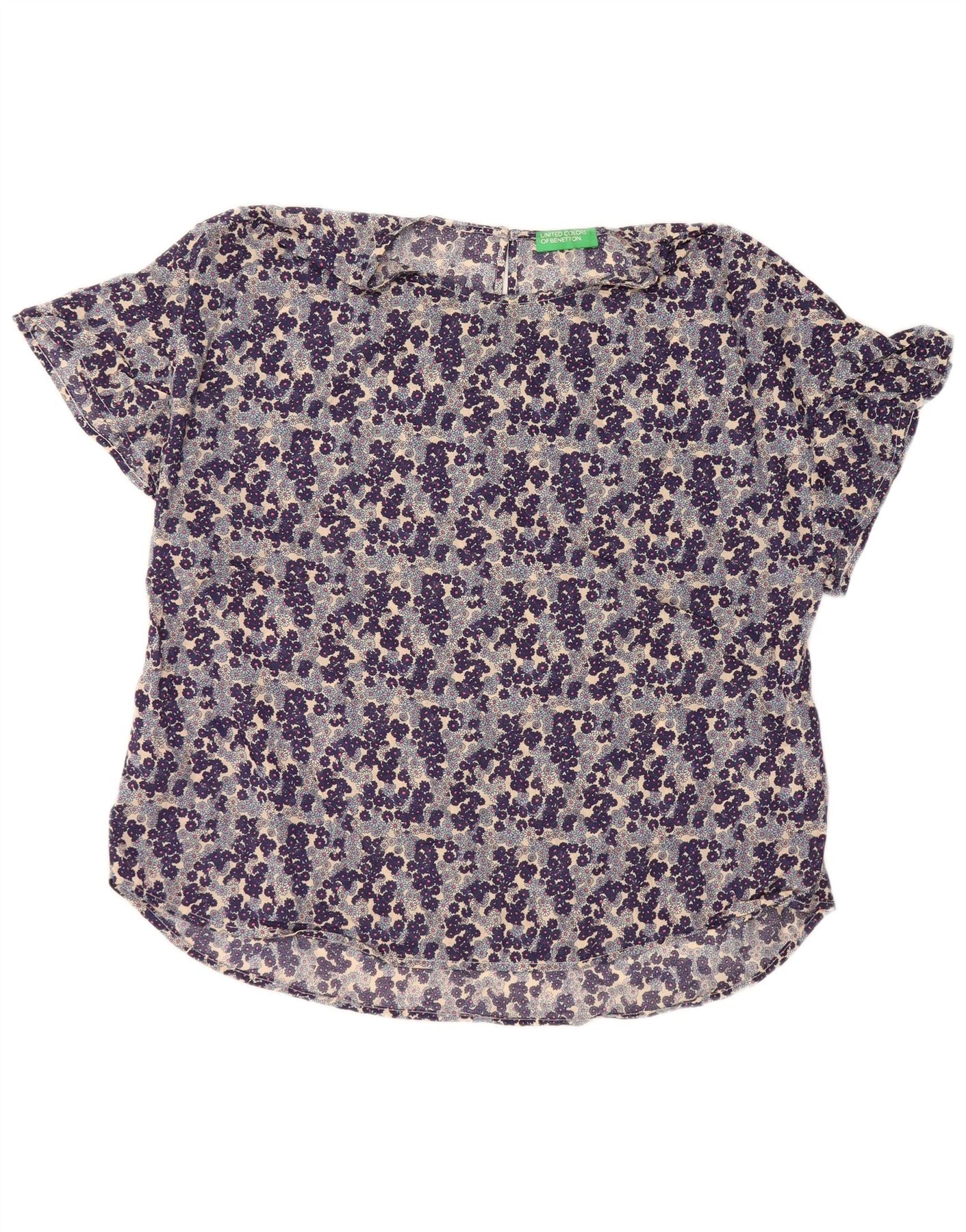 BENETTON Damen-Blusenoberteil UK 14 Mittelblaue geblümte Baumwolle