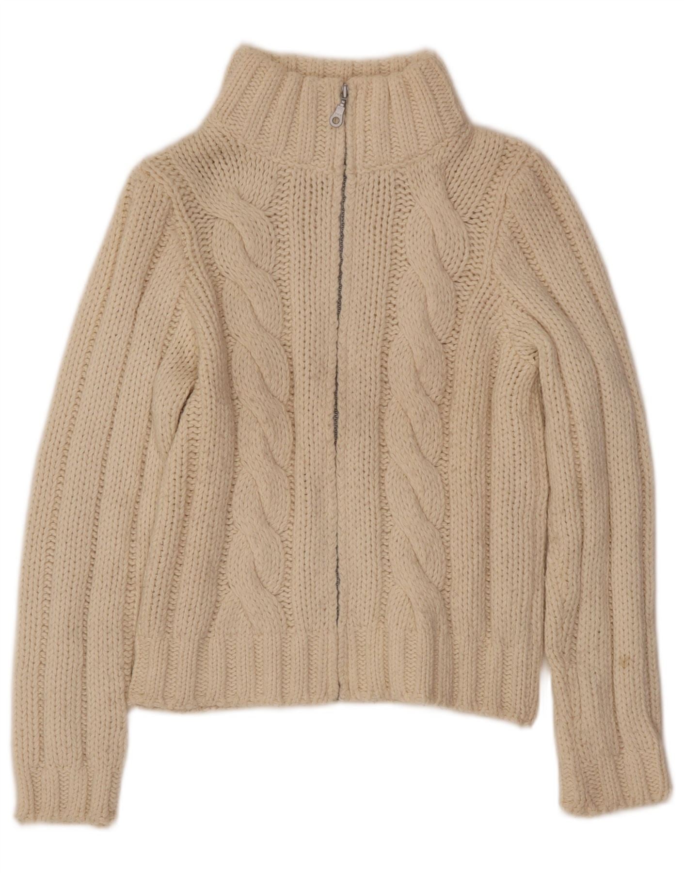 Benetton Damen-Cardigan-Pullover UK 14 Große cremefarbene Wolle