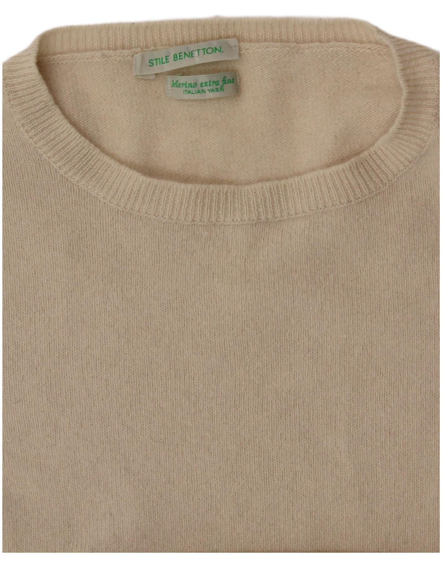 Home > Vintage Benetton-Kleidung > Damen > BENETTON Damen Pullover mit Rundhalsausschnitt UK 4 XS Beige Merinowolle