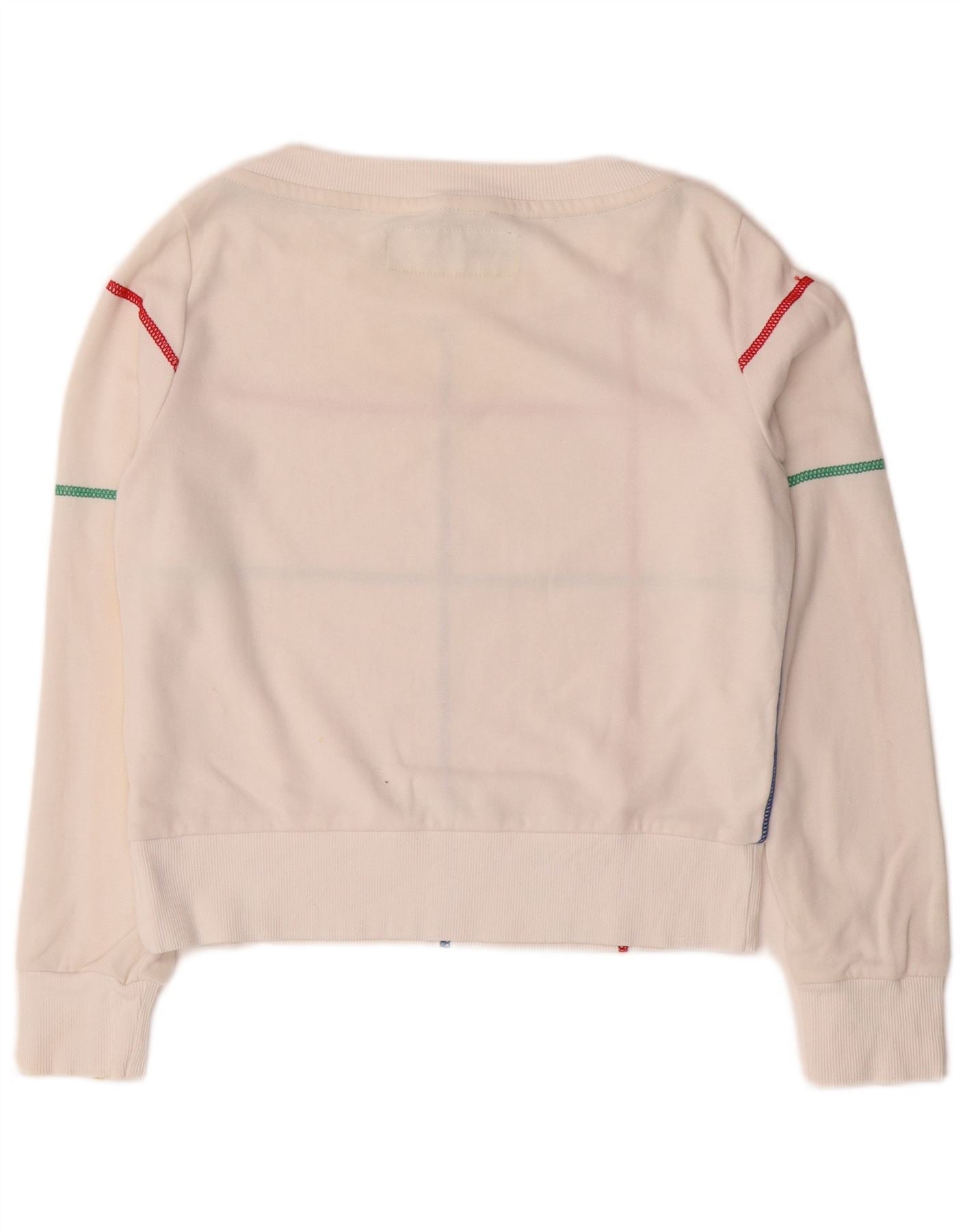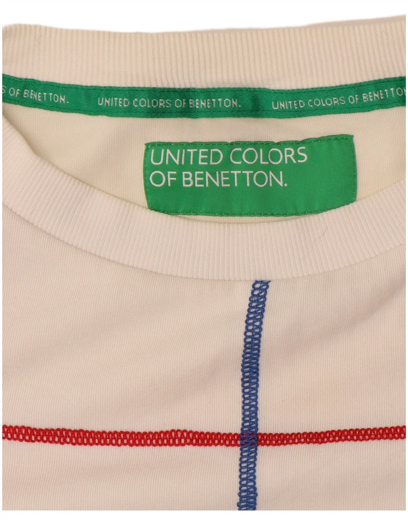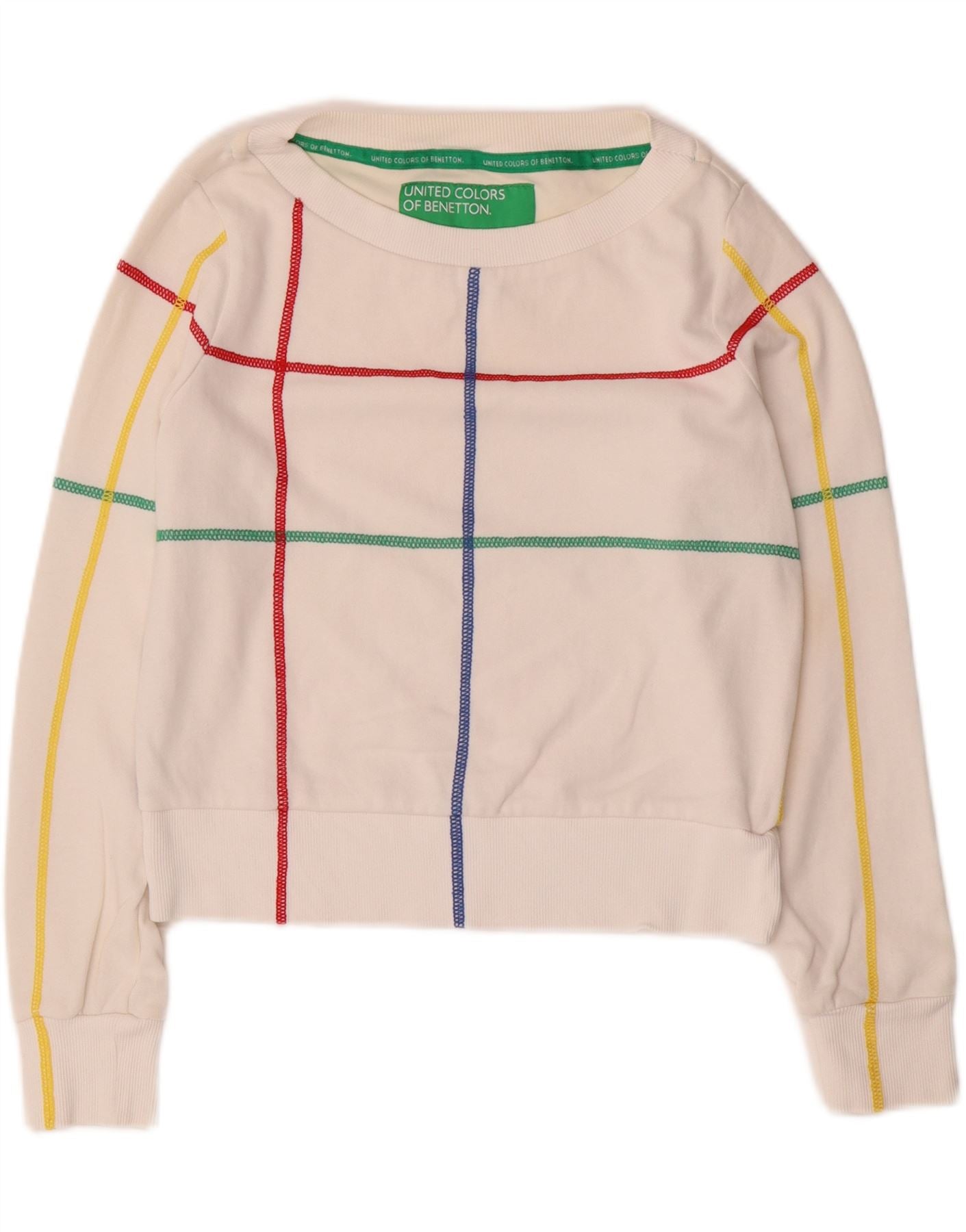 BENETTON Damen Crop Sweatshirt Pullover UK 10 Small Weiß gestreift