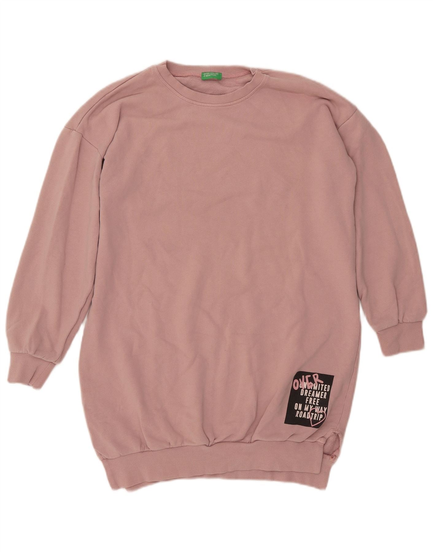 BENETTON Damen Grafik-Sweatshirt-Pullover UK 16 Large Pink