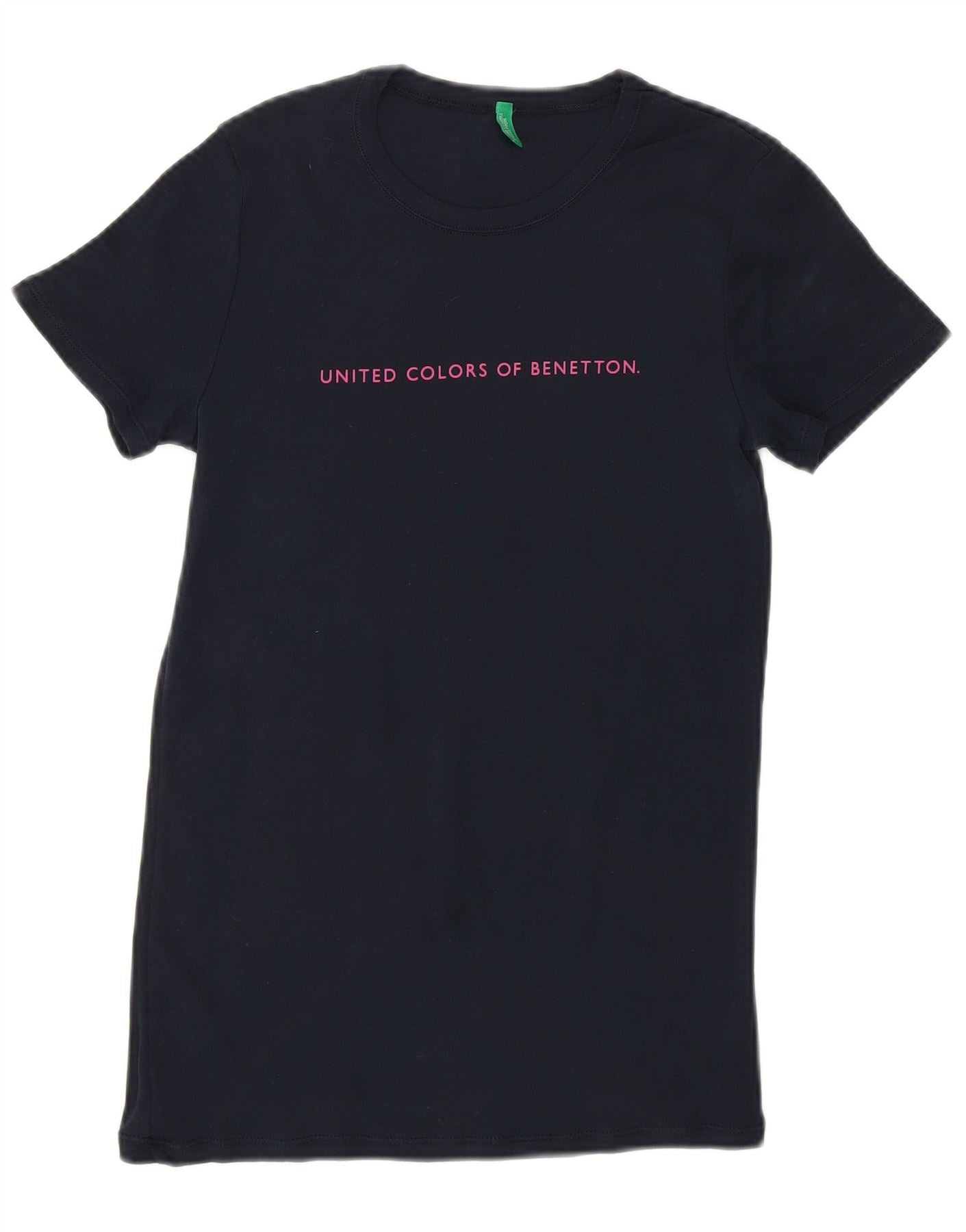 Home > Damen > Depop-Kleidung > BENETTON Damen Grafik-T-Shirt-Oberteil UK 12 Medium Marineblau Baumwolle