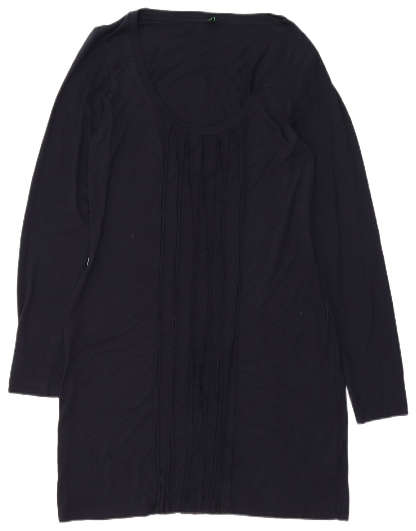 BENETTON Damen-Etuikleid mit langen Ärmeln, UK 14, mittleres Marineblau