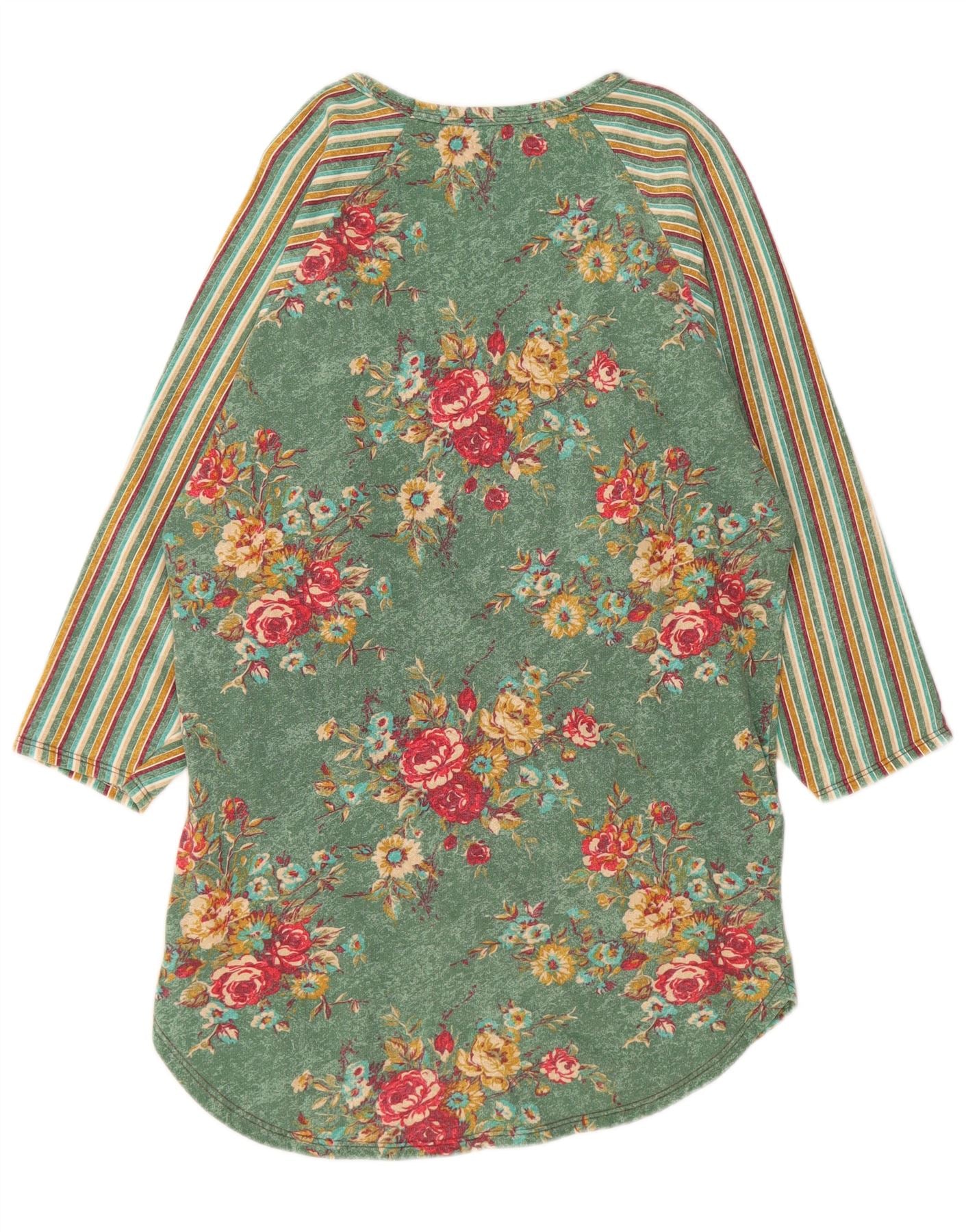 Home > Vintage Benetton-Kleidung > Damen > BENETTON Damen Langarm-T-Shirt-Kleid UK 14 Mittelgrün geblümt