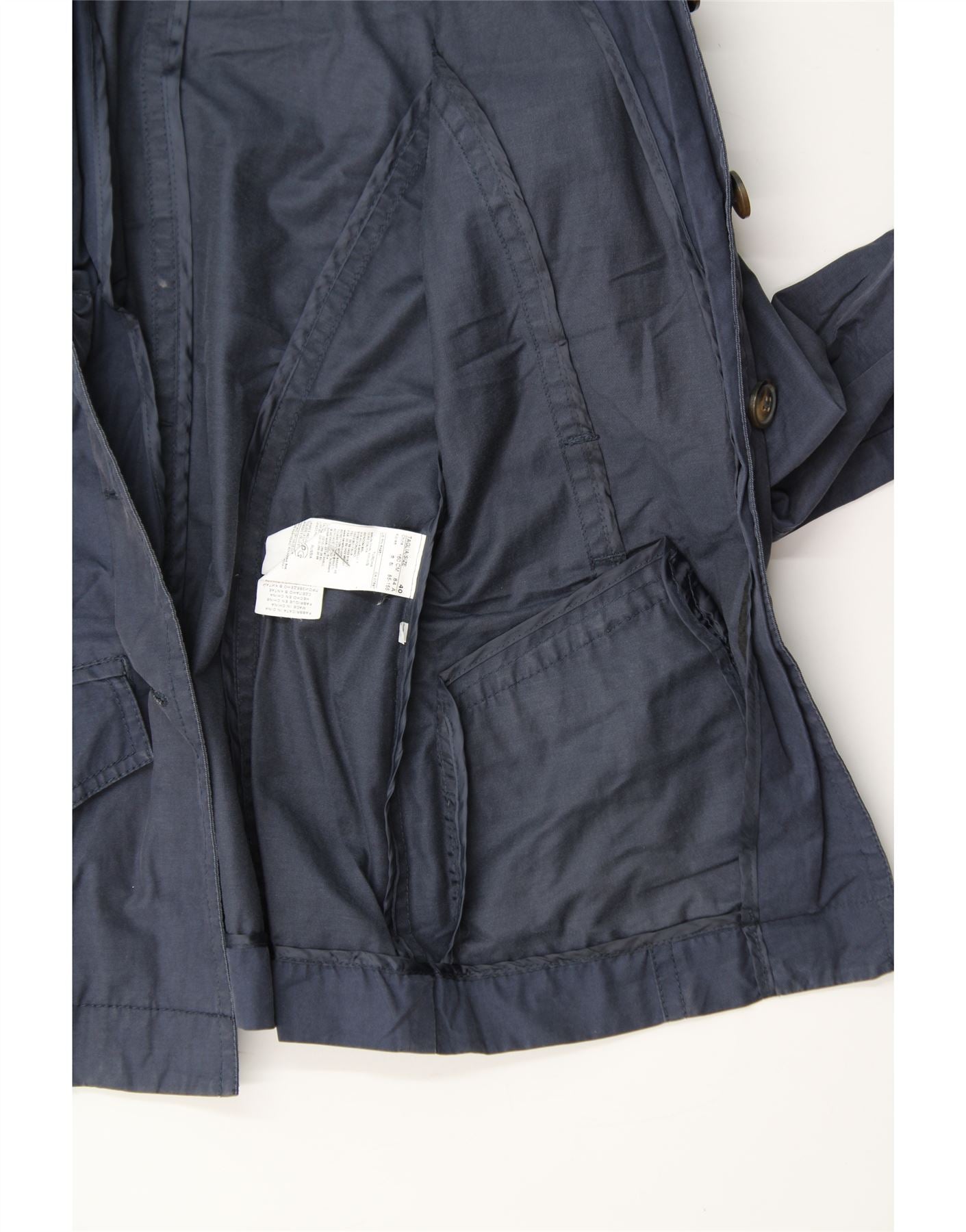BENETTON Womens Military Jacket IT 40 Small Navy Blue Cotton
