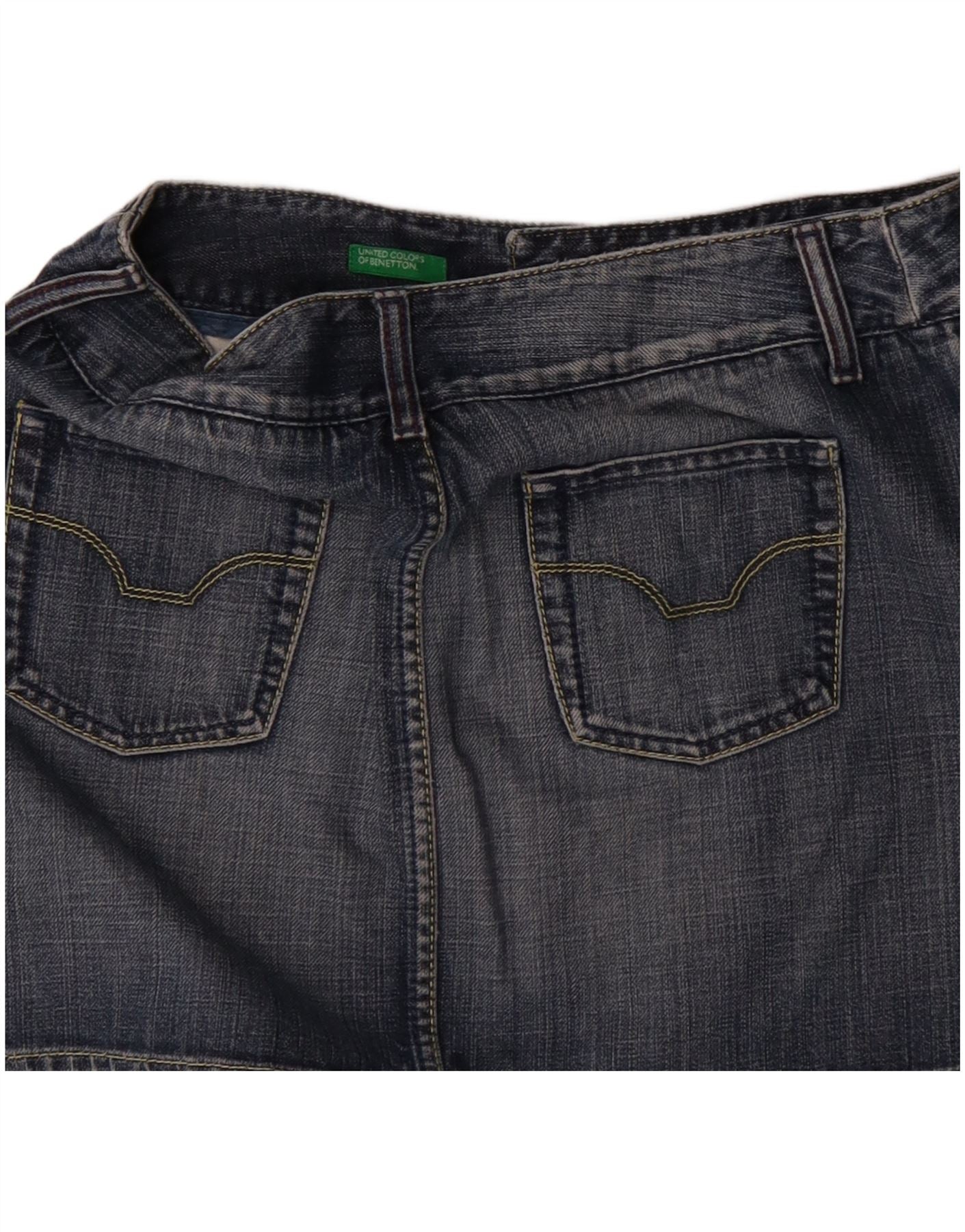 Benetton Damen Mini-Jeansrock IT 44 Medium W32 Blaue Baumwolle