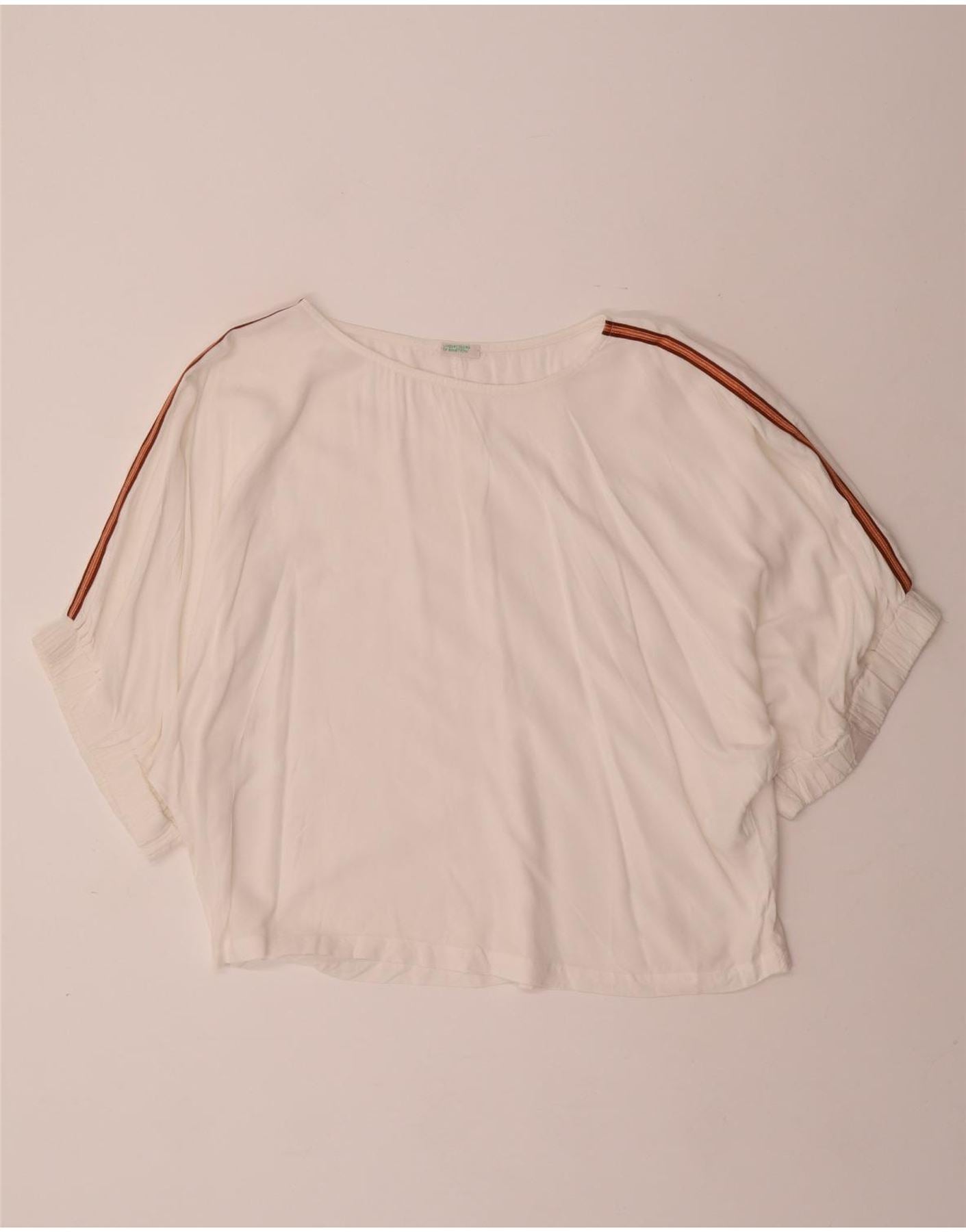 Home > Vintage Benetton-Kleidung > Damen > BENETTON Damen-Blusenoberteil in Übergröße, Gr. 10, Größe S, gebrochenes Weiß, Viskose