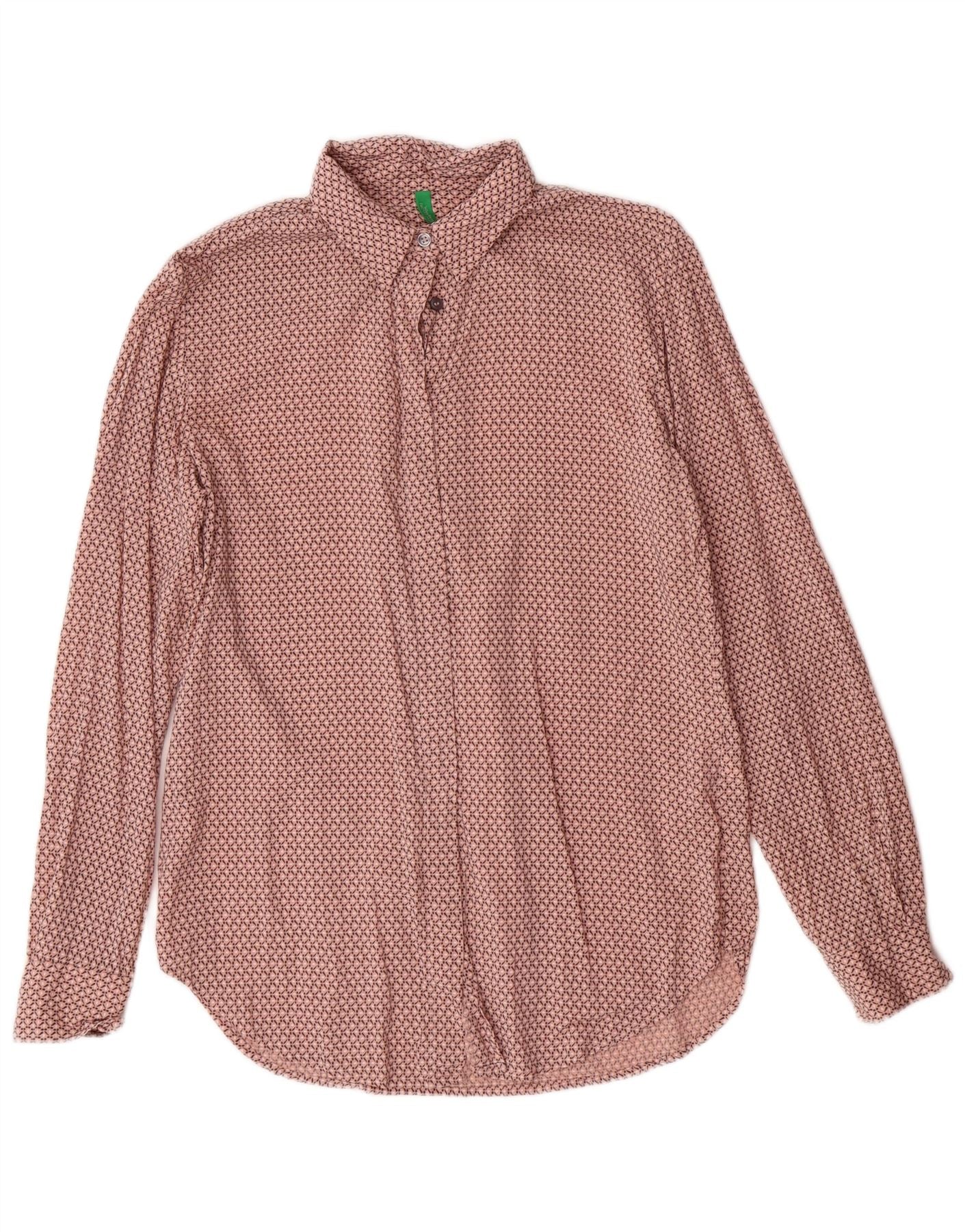 BENETTON Damen Übergroßes Longline-Hemd UK 6 XS Pink Geometrisch Modal