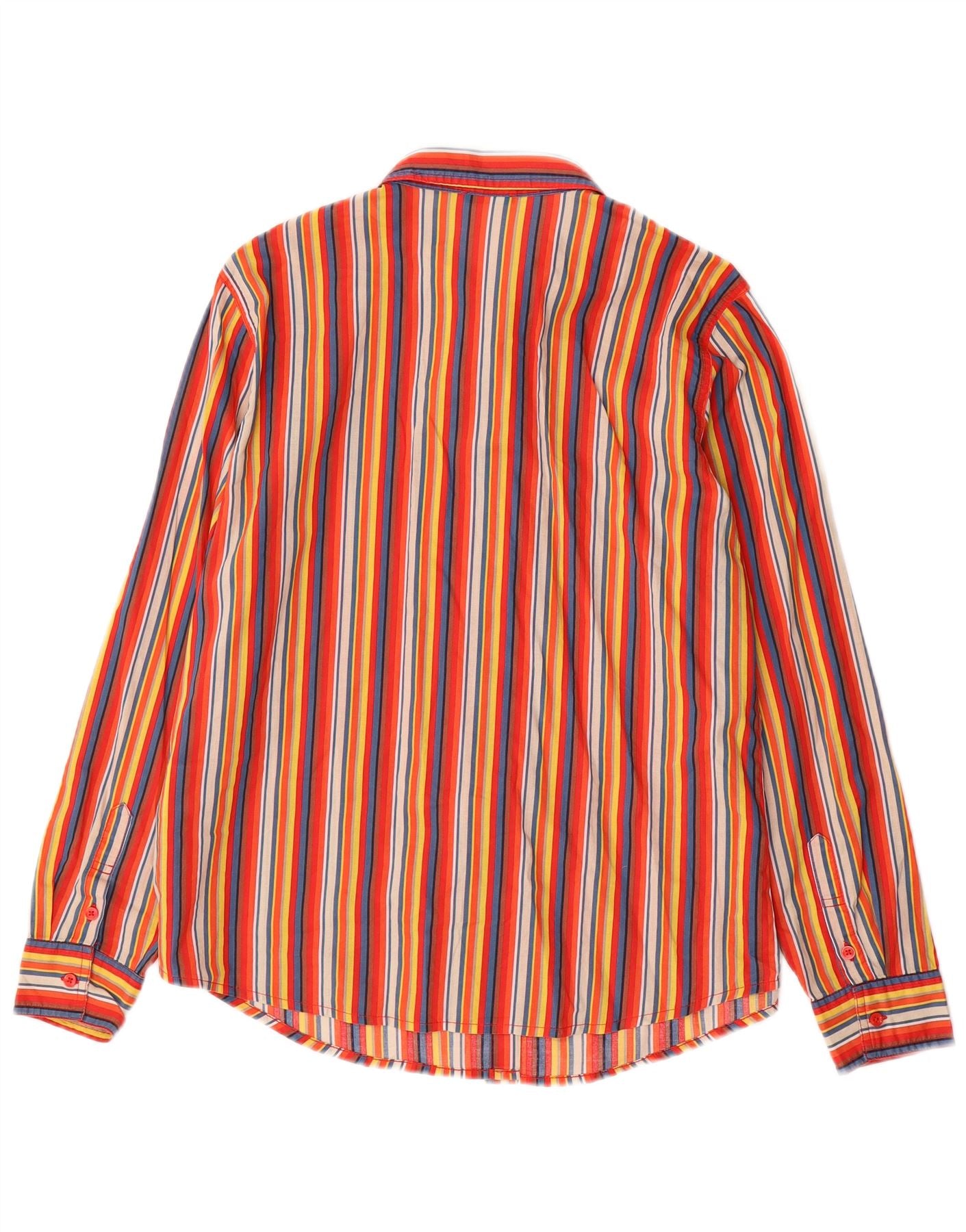 Home > Vintage Benetton-Kleidung > Damen > BENETTON Damen-Hemd UK 14 aus mehrfarbig gestreifter Baumwolle in mittlerer Größe