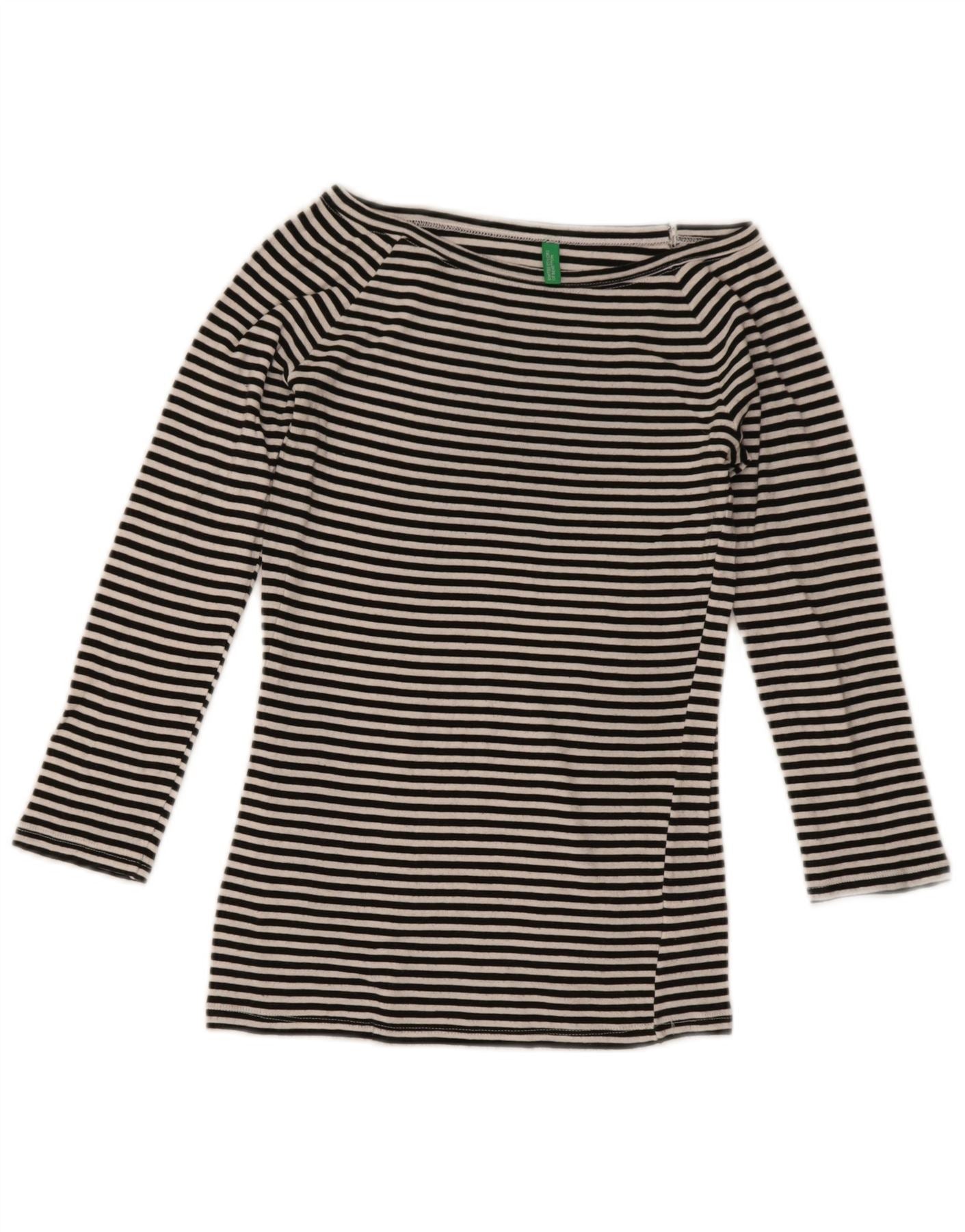 Benetton Damen-Oberteil, 3/4-Ärmel, UK-Größe 8, Größe S, schwarz, gestreift, Baumwolle