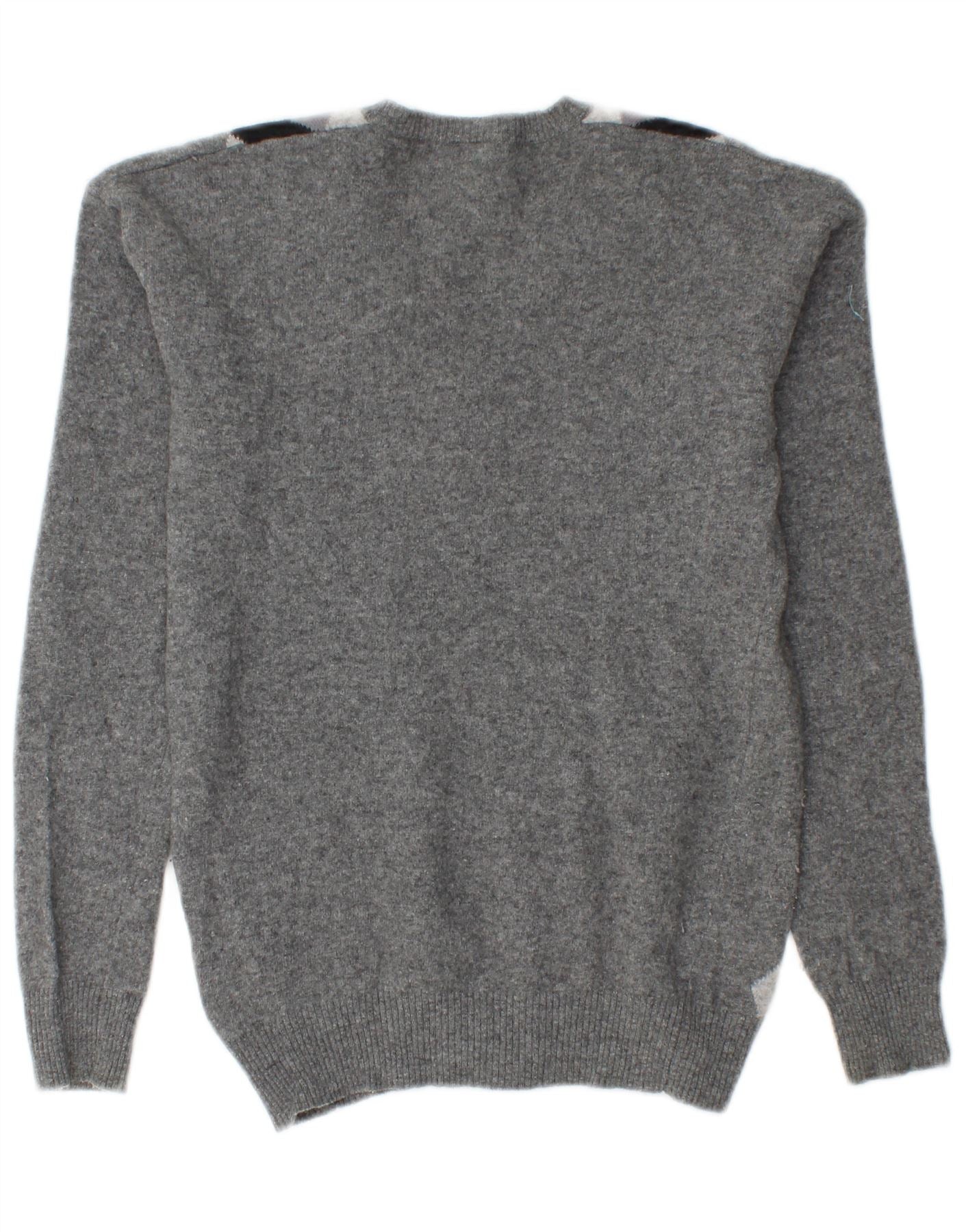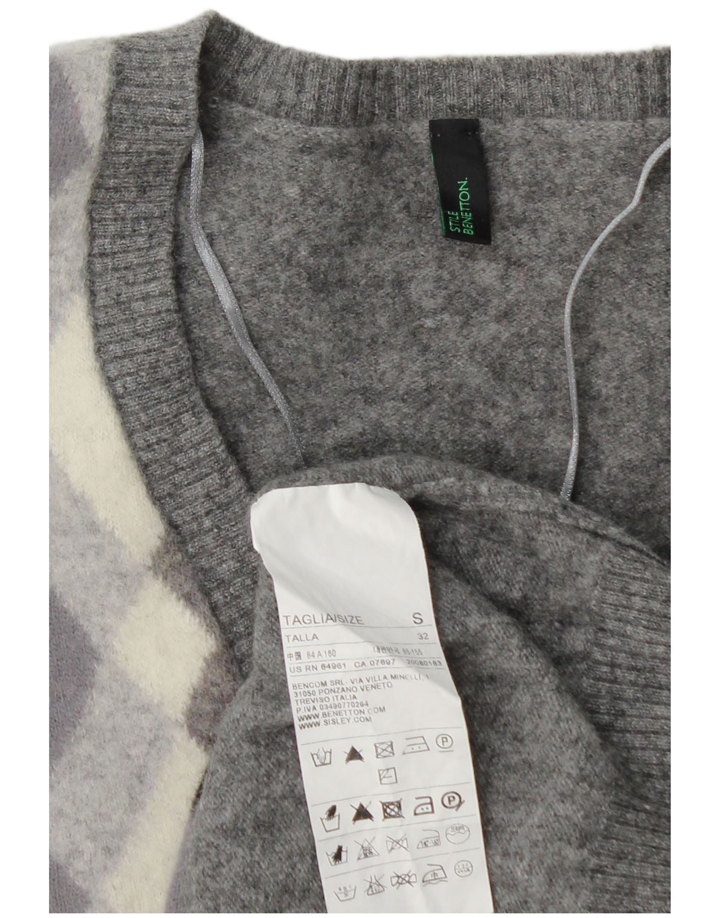Home > Vintage Benetton-Kleidung > Damen > BENETTON Damen-Pullover mit V-Ausschnitt, Gr. 10, Größe S, graue Argyle-/Diamantwolle