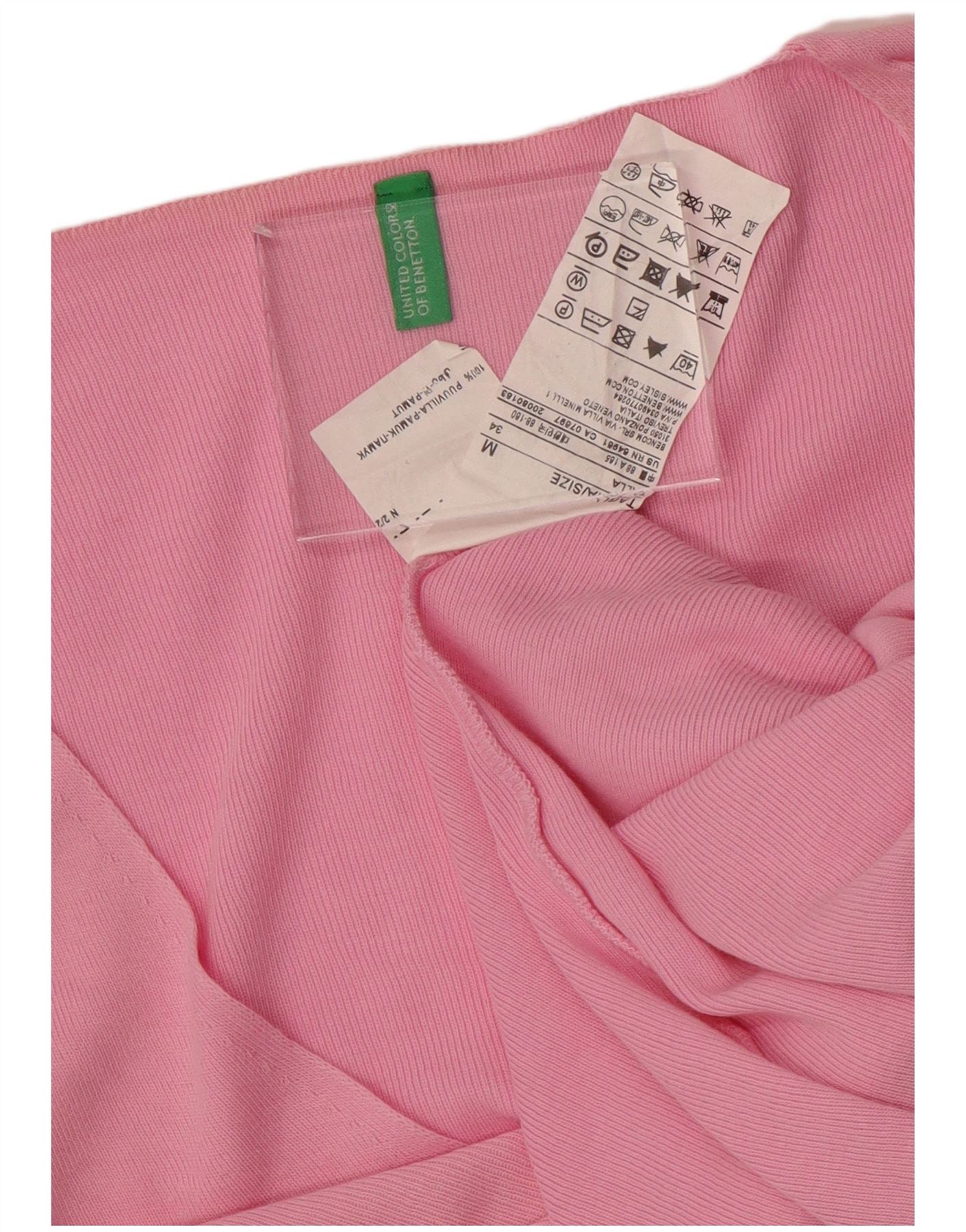 BENETTON Damen-Pullover mit V-Ausschnitt, UK 12, mittelrosa, Baumwolle