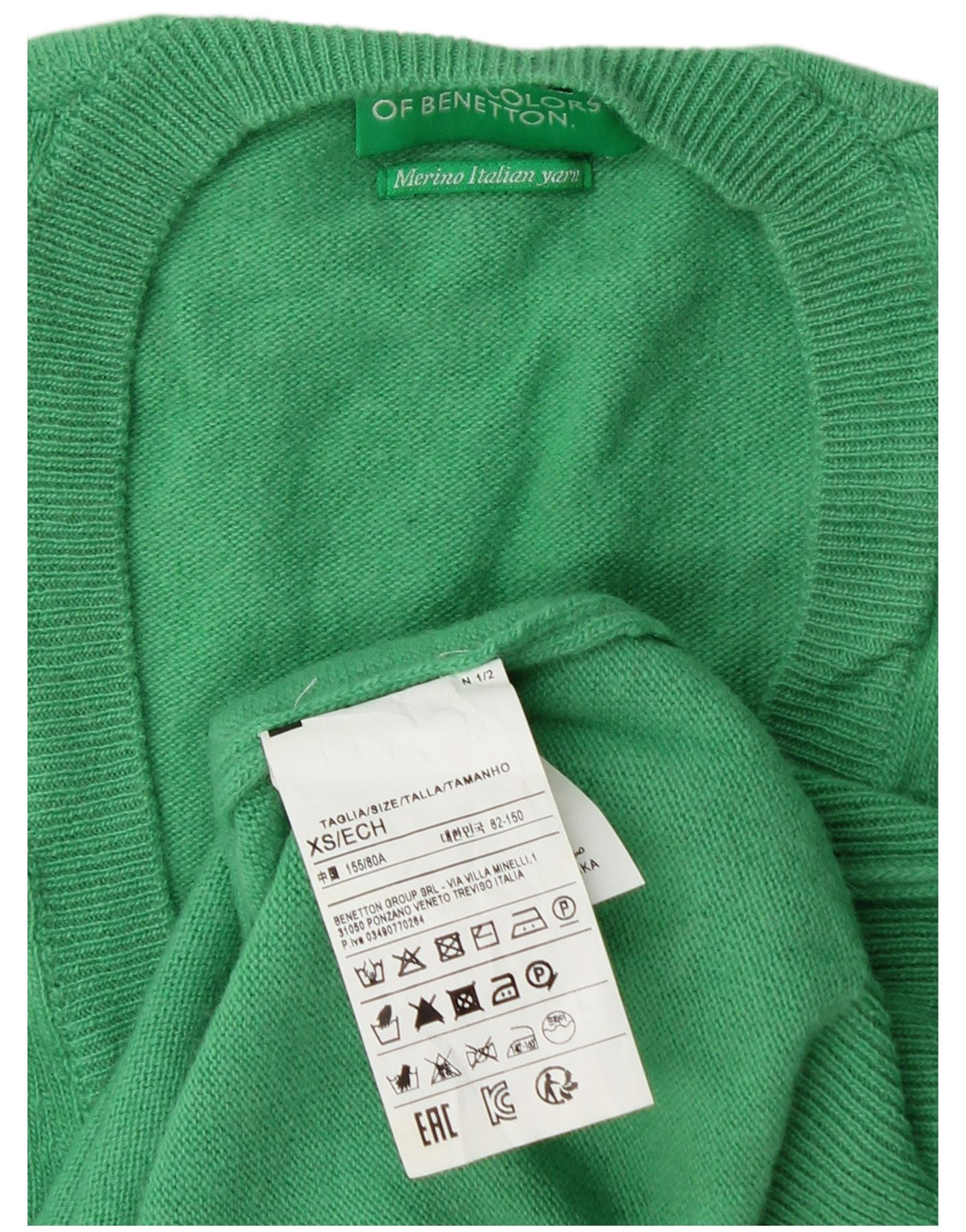 Home > Vintage Benetton-Kleidung > Damen > BENETTON Damen-Pullover mit V-Ausschnitt, Gr. 6, XS, grüne Schurwolle