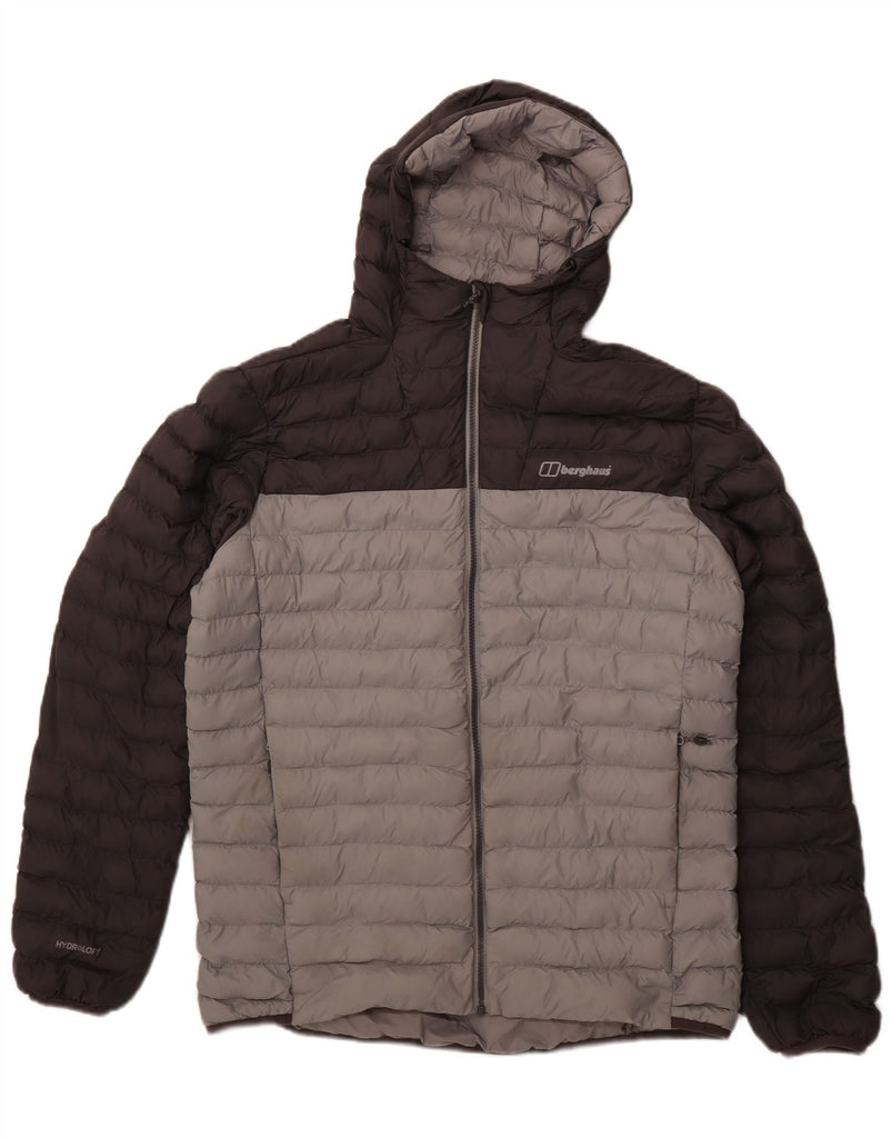 BERGHAUS Mens Hooded Padded Jacket UK 40 Large Grey Colourblock Polyamide