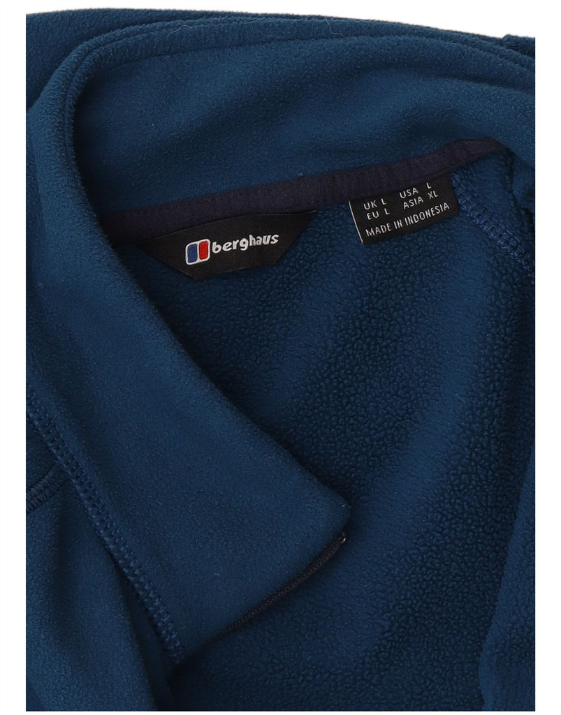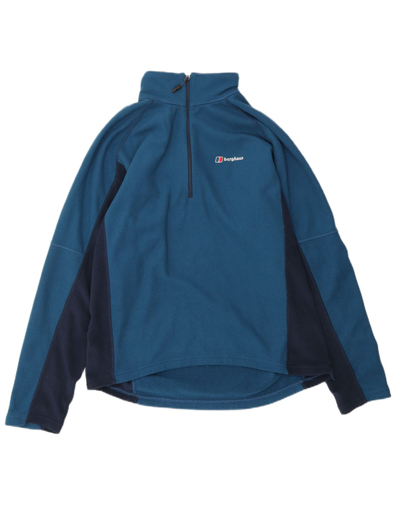 BERGHAUS Mens Zip Neck Fleece Jumper Large Blue Colourblock