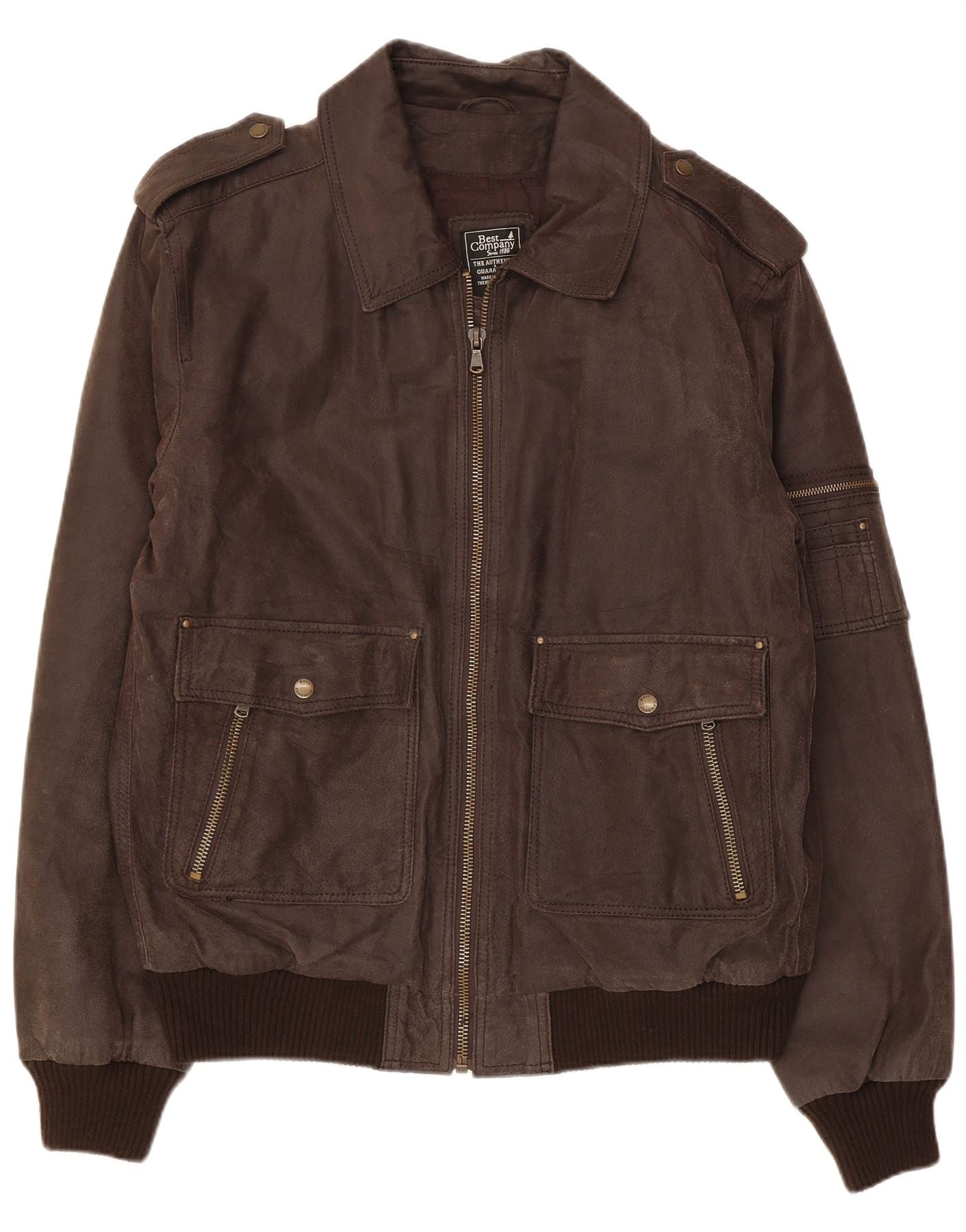 BEST COMPANY Herren-Militärlederjacke, UK 44, 2XL, braunes Leder