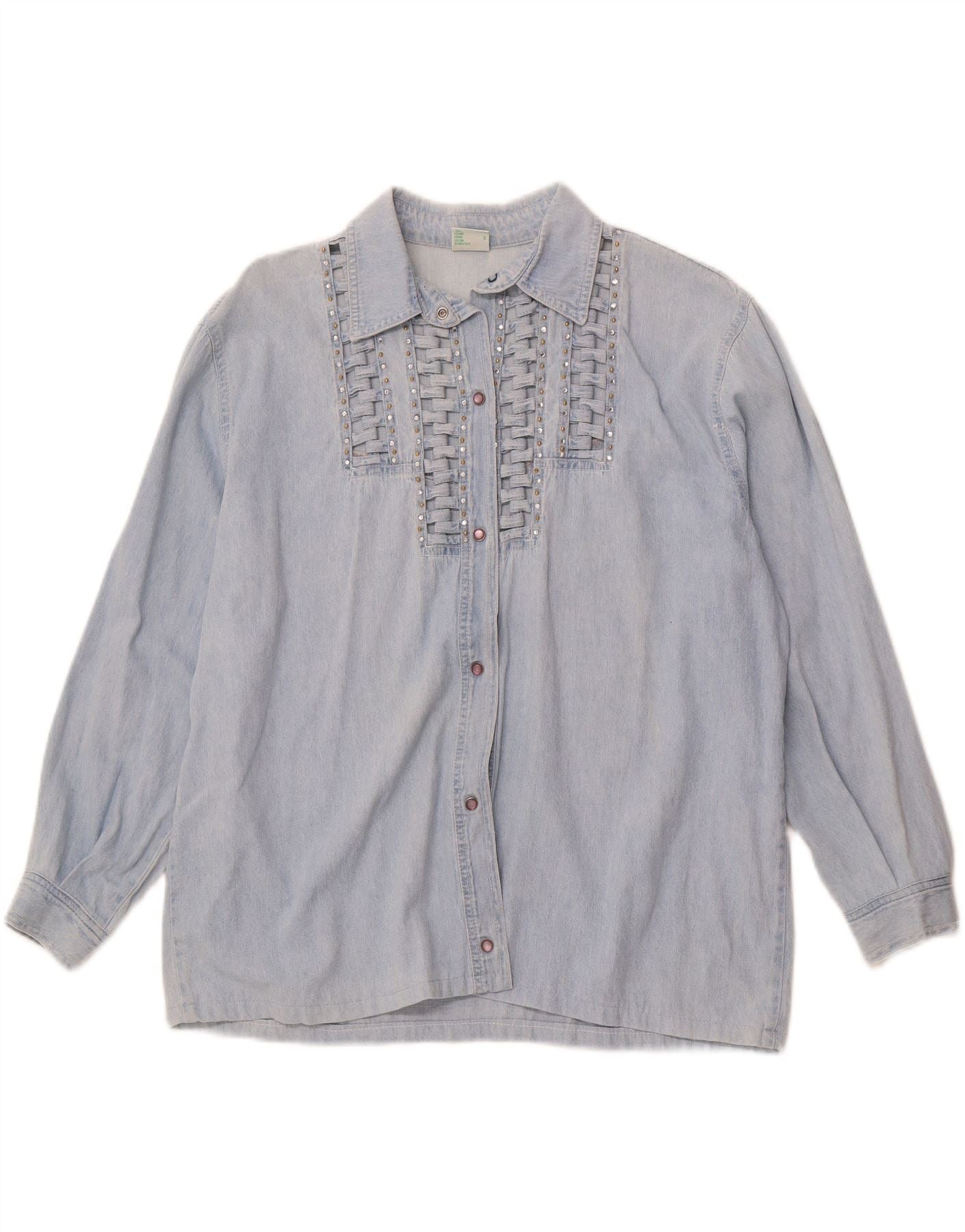 BIANCA MARIA CASELLI Womens Oversized Denim Shirt UK 10 Small Blue Cotton