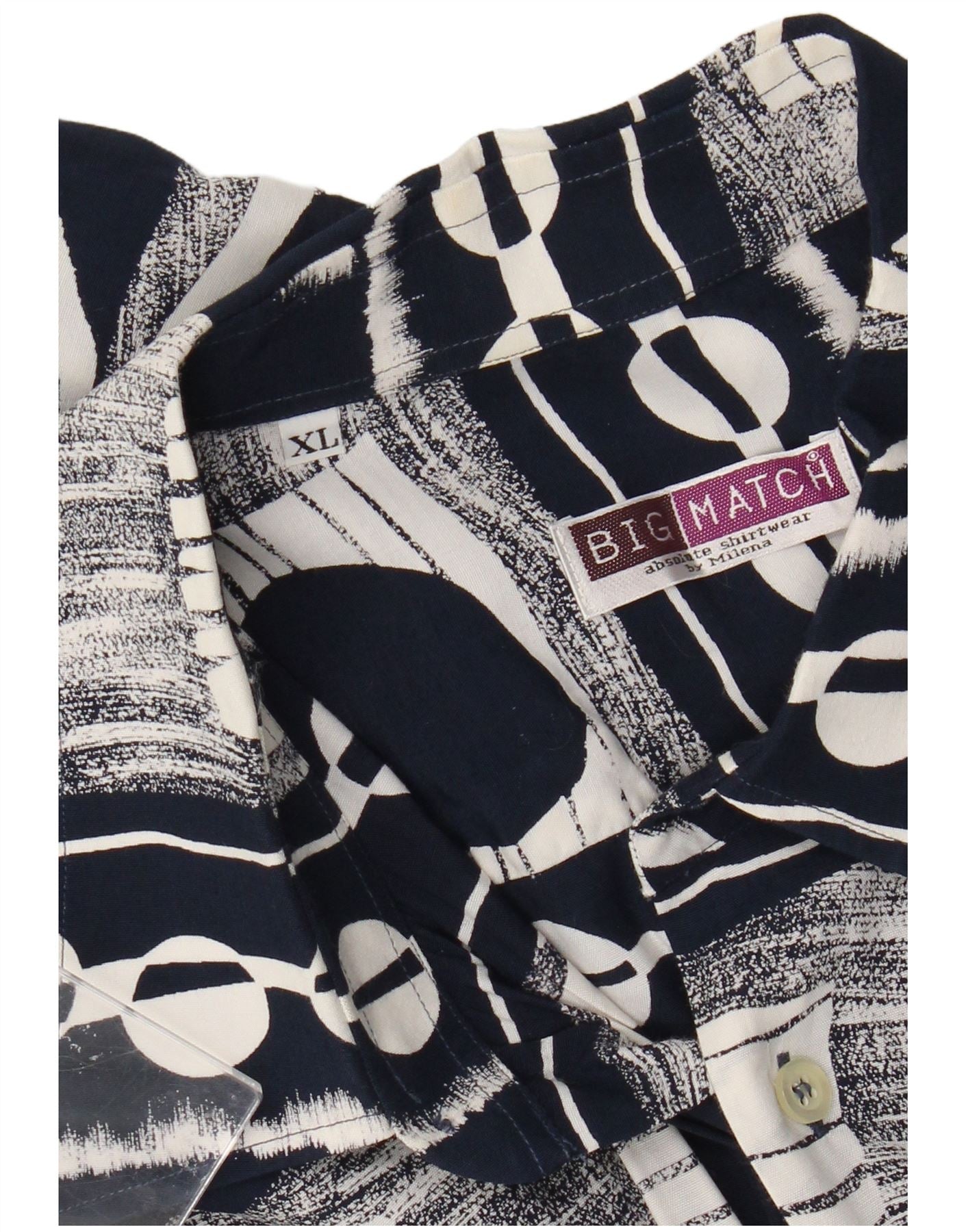 - KI-Beschreibung: Dieses Big Match-Herrenhemd verfügt über ein auffälliges geometrisches Muster in Marineblau und Weiß. Es besteht aus einem leichten, gewebten Stoff und bietet eine entspannte Passform. Der klassische Kragenausschnitt und die kurzen Ärmel sorgen für eine zeitlose Silhouette. Eine durchgehende Knopfleiste vorne und eine einzelne Brusttasche sorgen für funktionale Details. Sein kühnes, retroinspiriertes Design sorgt für einen unverwechselbaren, lässigen Look.