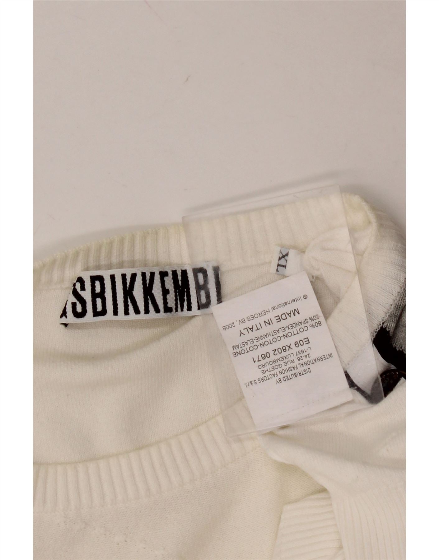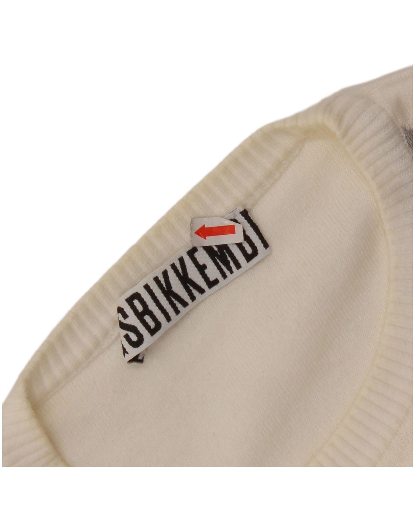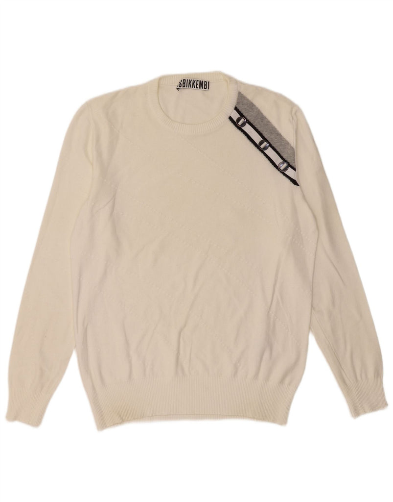 BIKKEMBERGS Mens Graphic Crew Neck Jumper Sweater XL White Colourblock