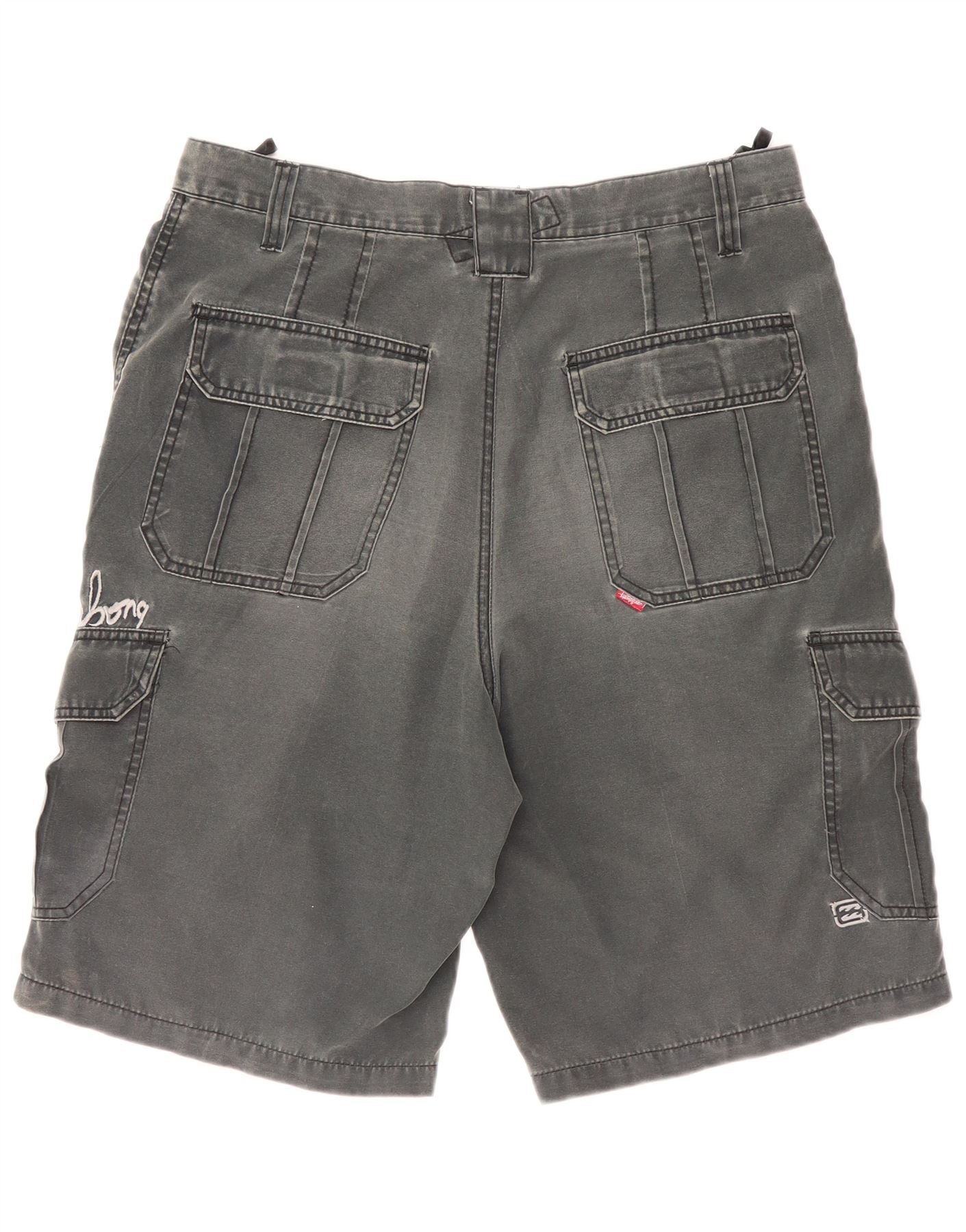 - AI Description: This Billabong mens Cargo Shorts are crafted from durable grey 100 percent polyester woven fabric. They feature a relaxed, loose fit for ultimate comfort and movement. The button closure ensures a secure fastening. Multiple pockets provide practical storage, embodying a workwear style. A subtle logo accent adds a signature touch, perfect for sports and surfing activities.