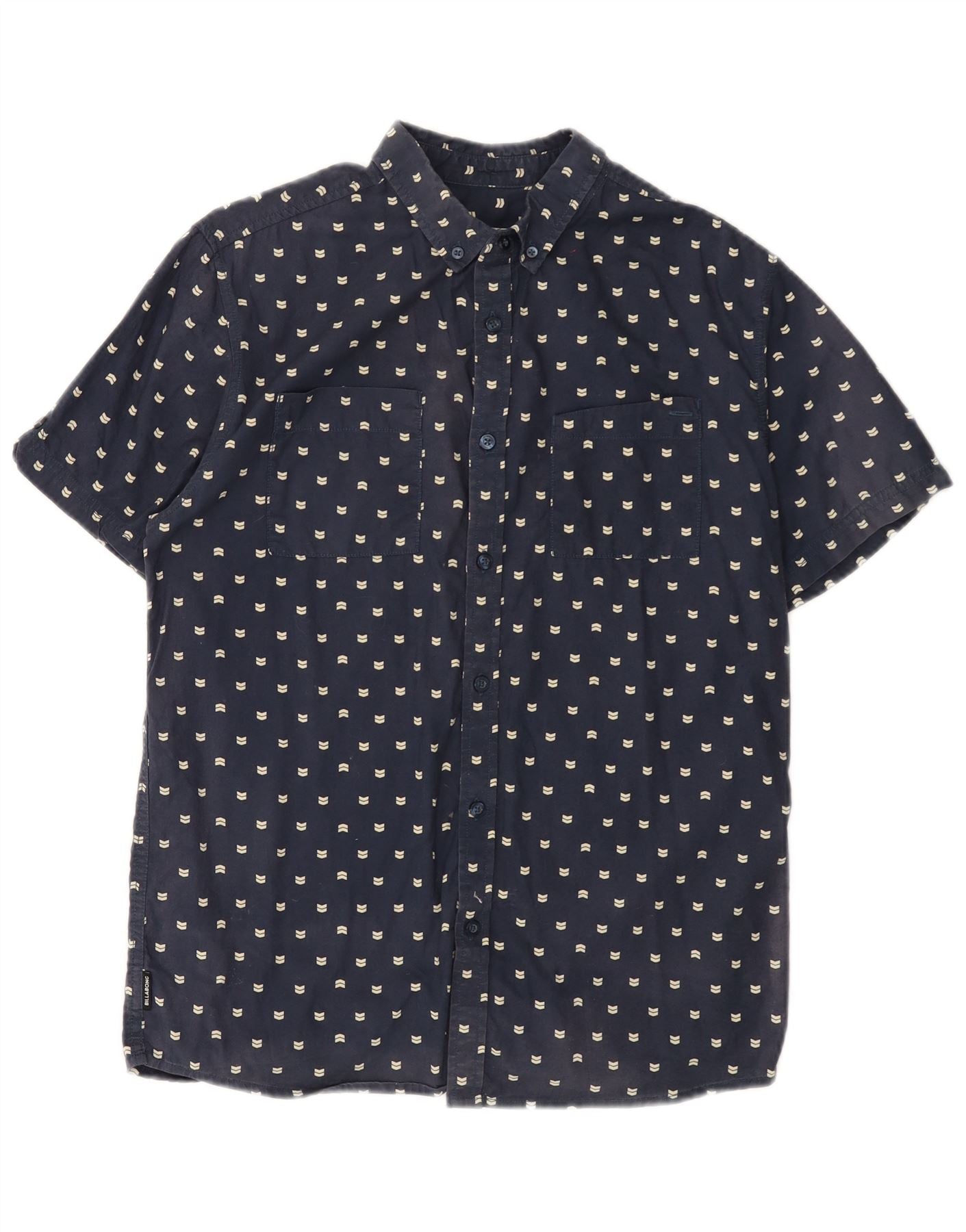 BILLABONG Herren Slim Fit Kurzarmhemd Mittelblau gepunktete Baumwolle