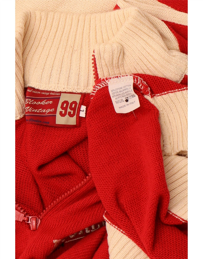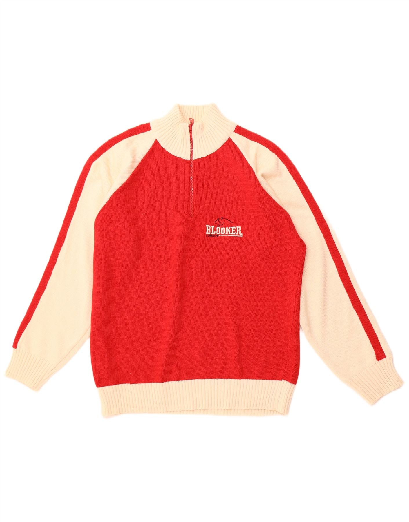 BLOOKER Herren-Pullover mit Reißverschluss am Hals, groß, rote Baumwolle in Blockfarben