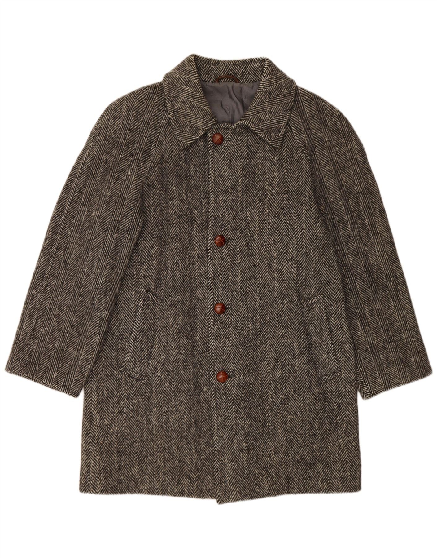 BLUE DEVIL Herrenmantel UK 38 Mittelgraue Wolle mit Fischgrätenmuster