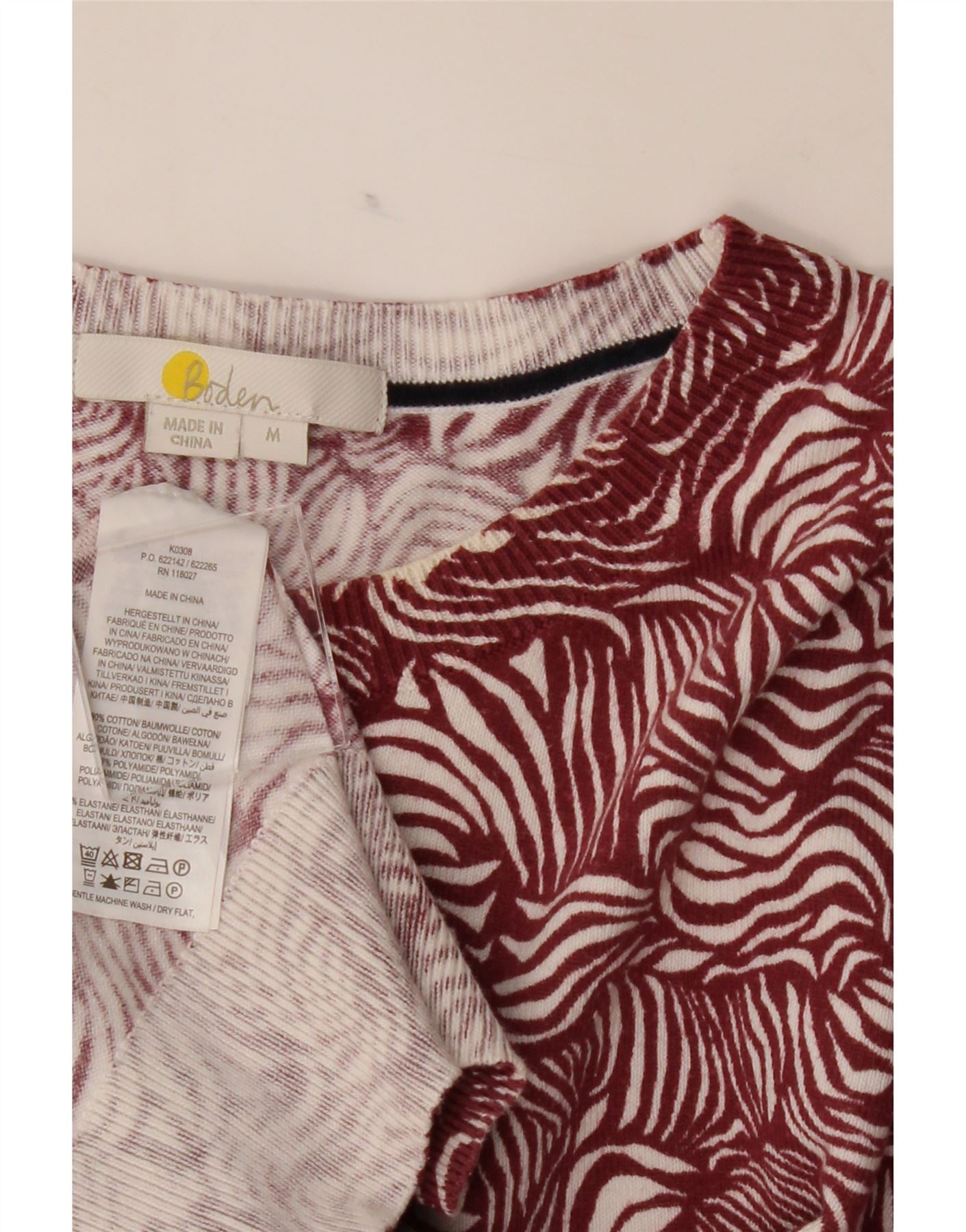 BODEN Womens Boat Neck Jumper Sweater UK 14 Medium Burgundy Animal Print