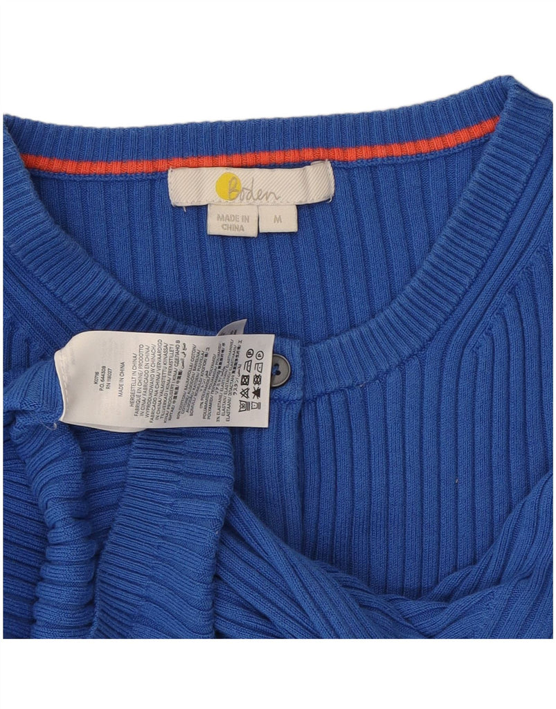 - AI Description: This Boden womens cardigan sweater is crafted from a soft blue cotton knit, blended with elastane for comfortable stretch. It features a classic round neckline and a full button-up front. Long sleeves provide warmth. The regular fit ensures a comfortable, versatile silhouette.