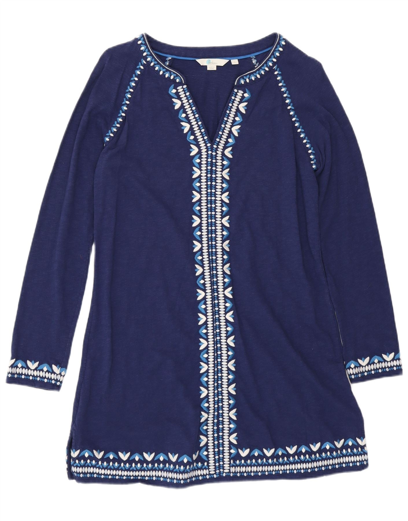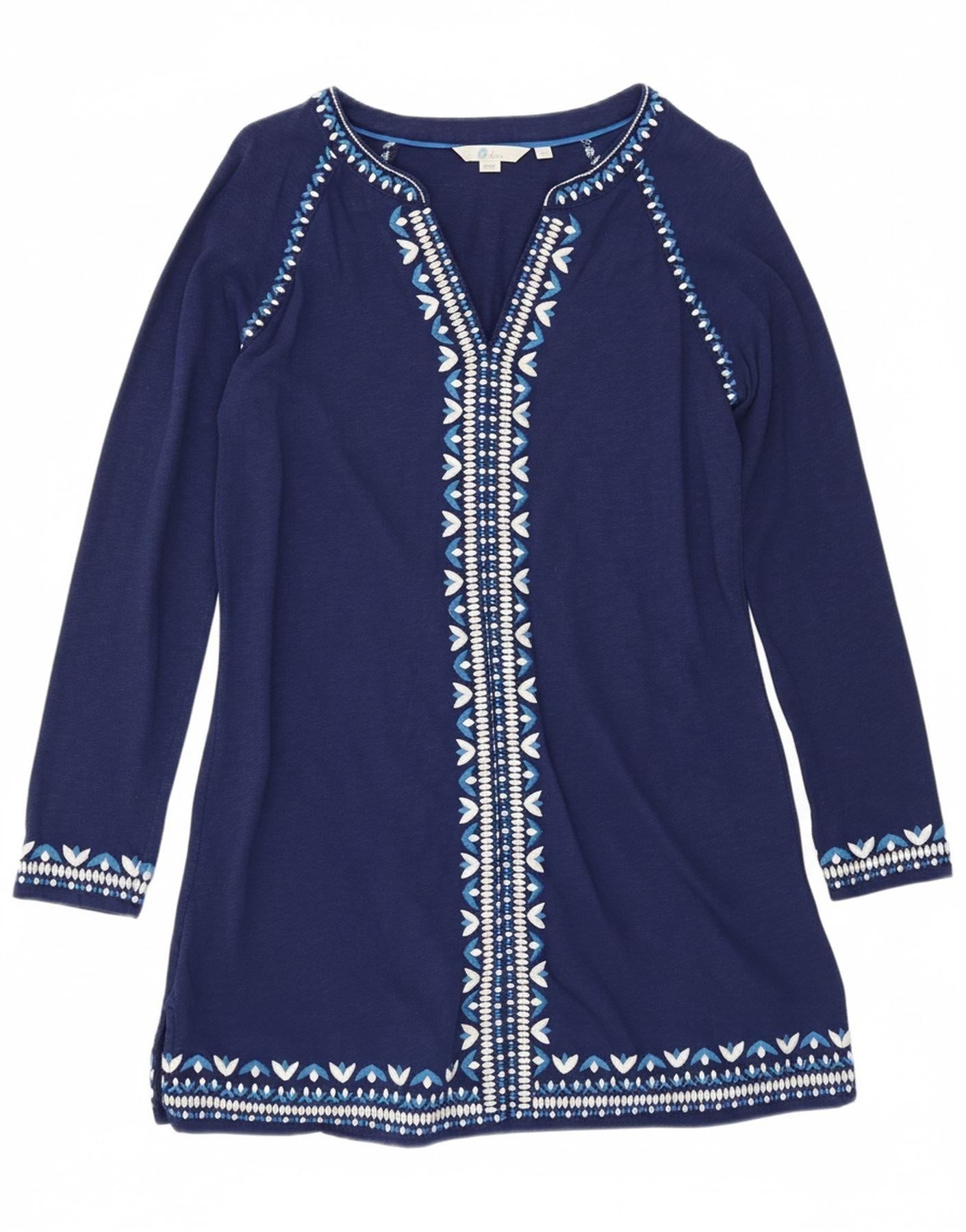 BODEN Womens Long Sleeve Shift Dress UK 10 Small Navy Blue Floral Cotton