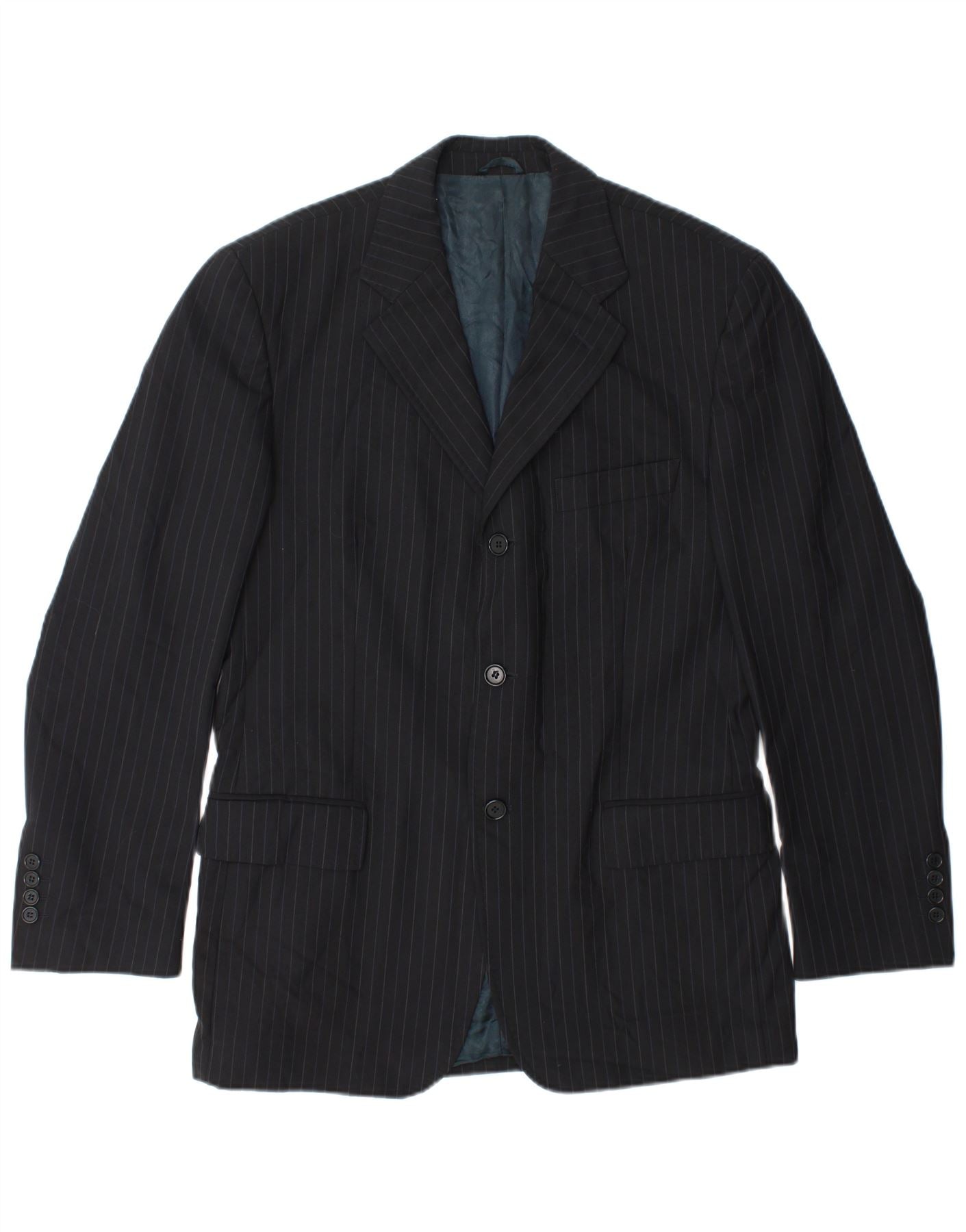 BOGGI Herren-Blazer mit 3 Knöpfen, IT 50, große, schwarz gestreifte Wolle